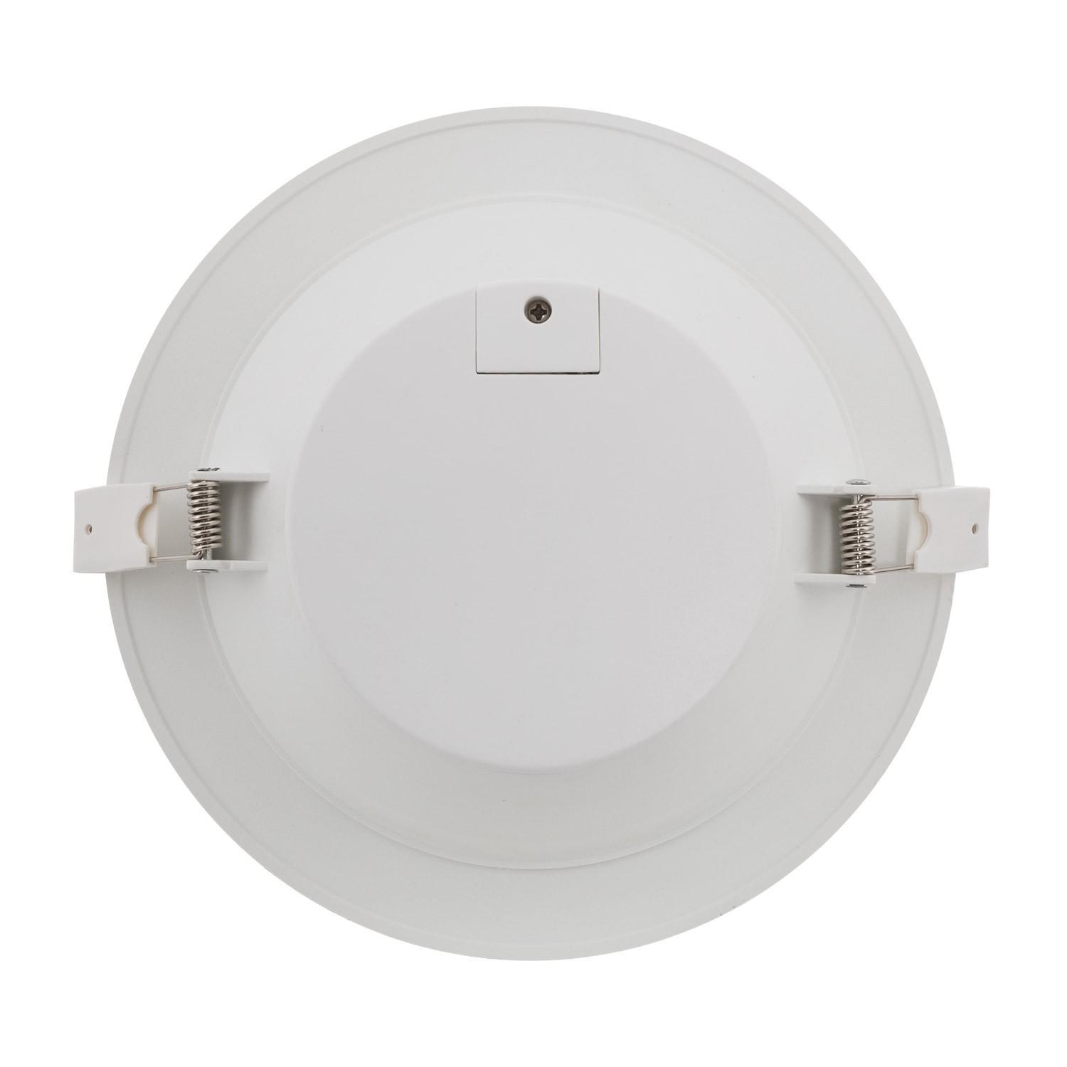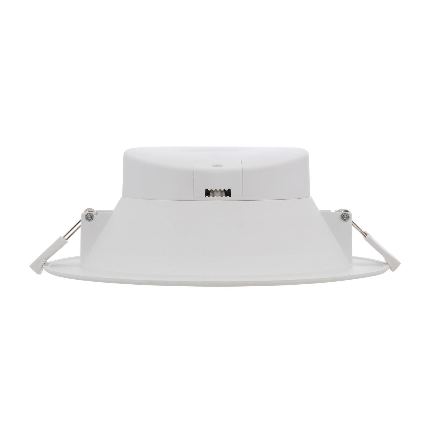 L’installation encastrée est rapide grâce à une découpe standard Ø145 mm et des ressorts de fixation discrets, pour un diamètre apparent de 190 mm et faible profondeur. Fonctionne directement sur 220‑240V en isolation classe II, sans nécessité de mise à la terre.