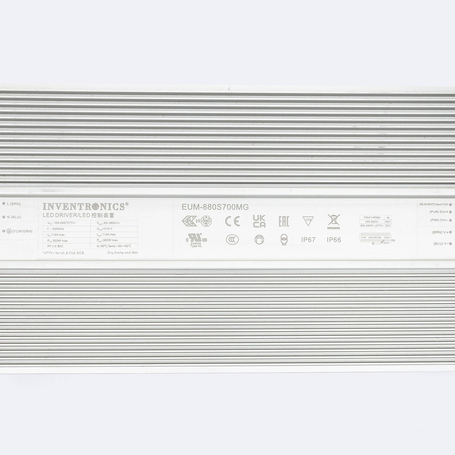 Le driver INVENTRONICS EUM-0880S700MG 880W est une alimentation LED haute puissance pour éclairage extérieur et intérieur, conçue pour les installations exigeantes. Son boîtier aluminium IP67 assure une excellente résistance, tandis que la variation 0-10 V et PWM permet un contrôle précis et fiable de l’intensité lumineuse.