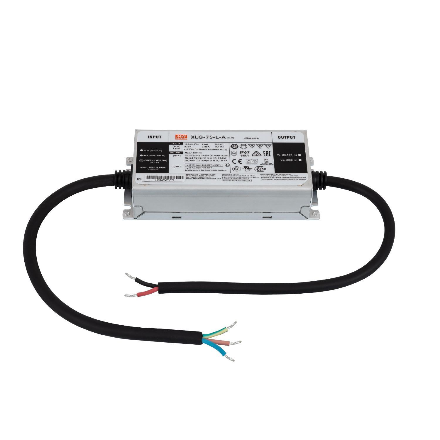 Driver MEAN WELL 100-240V IP67 Sortie 53-107V DC 700-1050mA 75W XLG-75-L-A