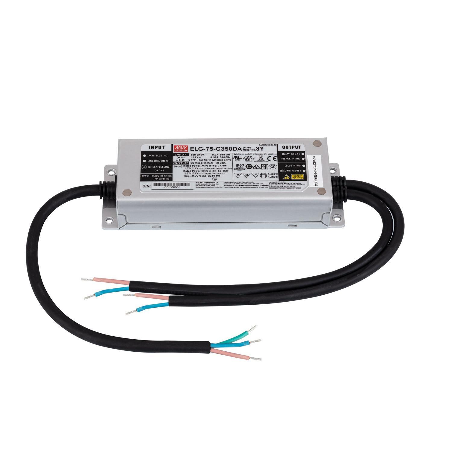 Driver MEAN WELL Dimmable DALI IP67 100-240V Sortie 107-214V DC 350mA 75W ELG-75-C350DA