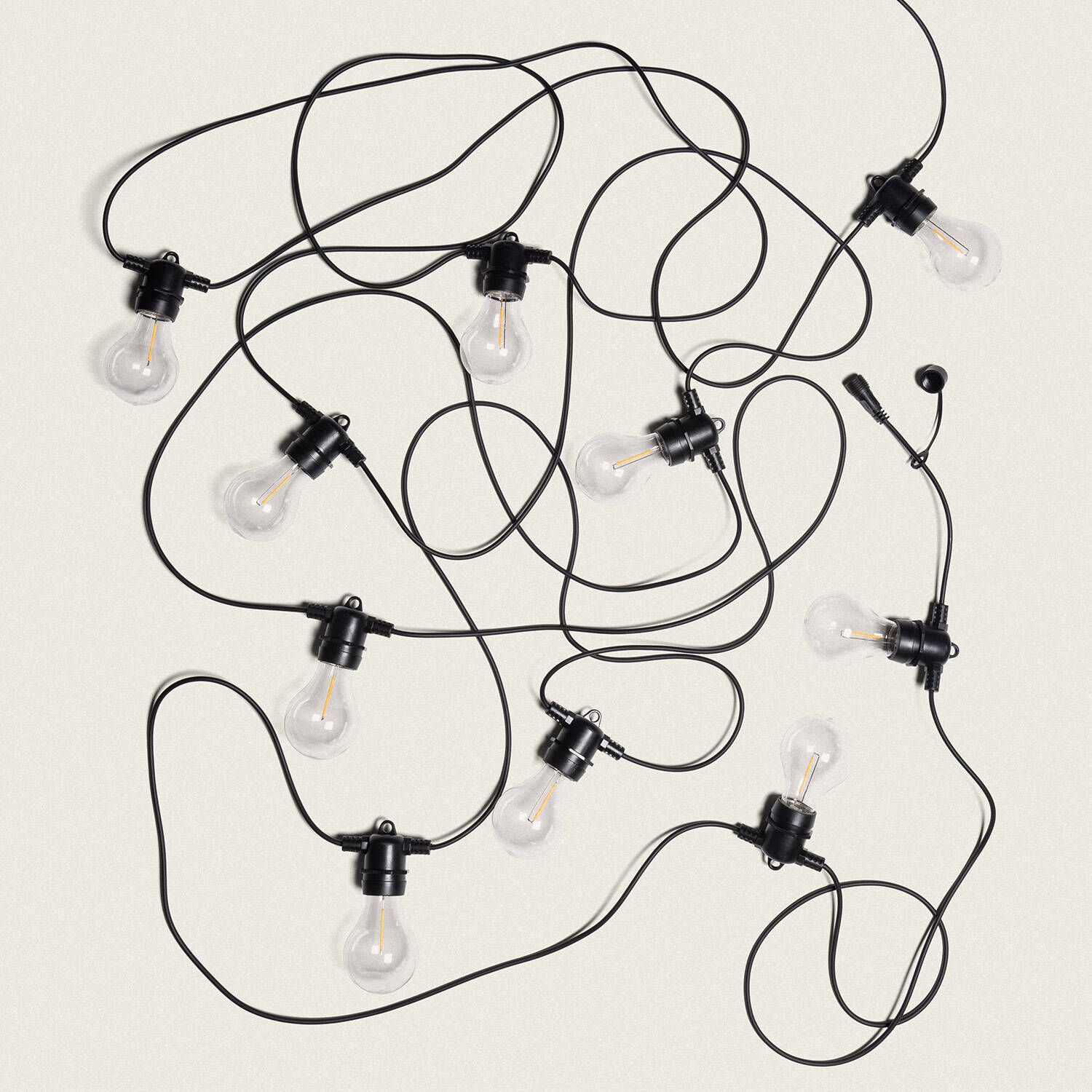Guirlande Extérieure avec 10m Noire + 10 Ampules Filament LED E27 24V