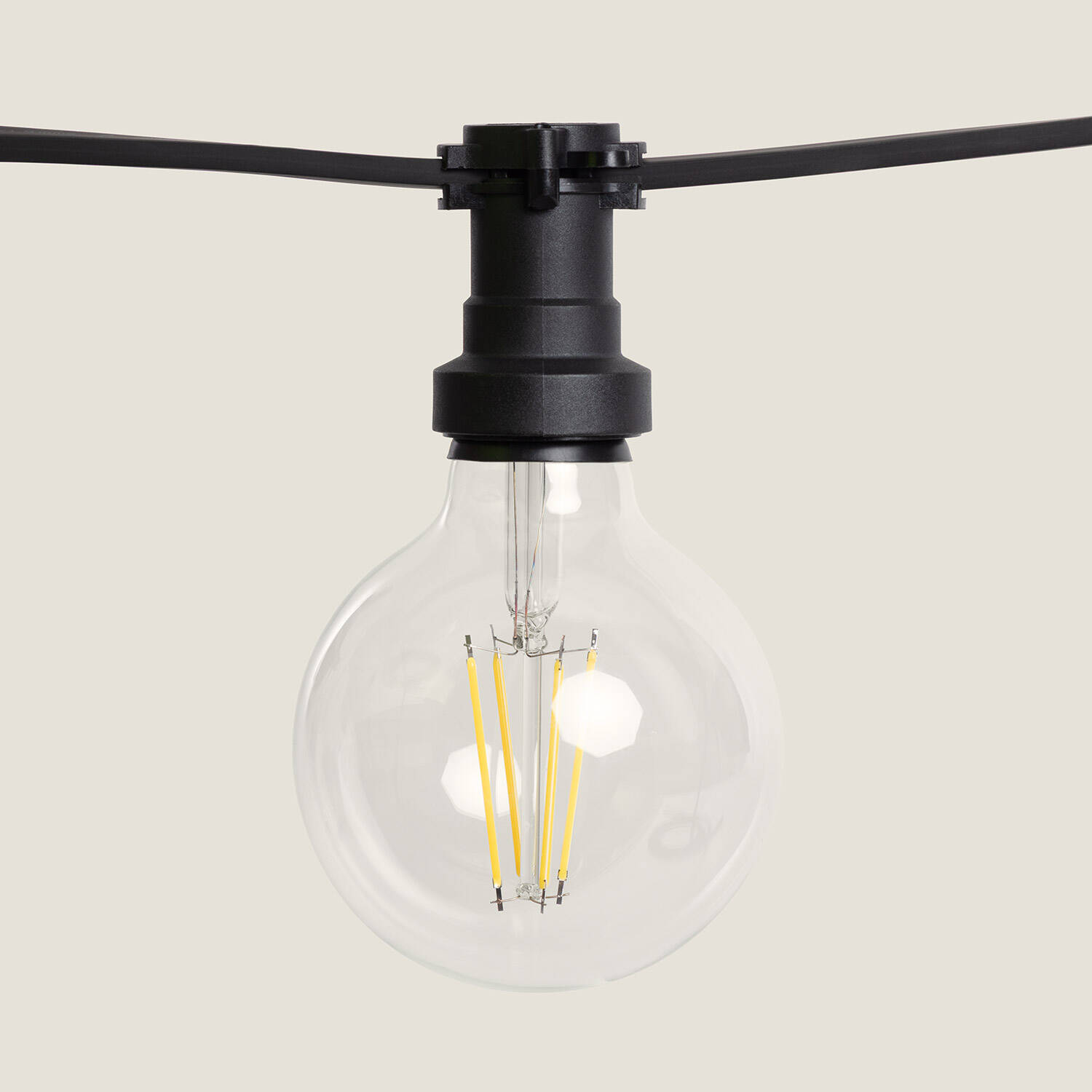 Compatible avec l’ensemble des ampoules au culot E27, la guirlande vous laisse choisir intensité et température de couleur selon vos besoins. La puissance maximale recommandée est de 40 W et les ampoules ne sont pas fournies, ce qui permet une personnalisation complète de l’ambiance.