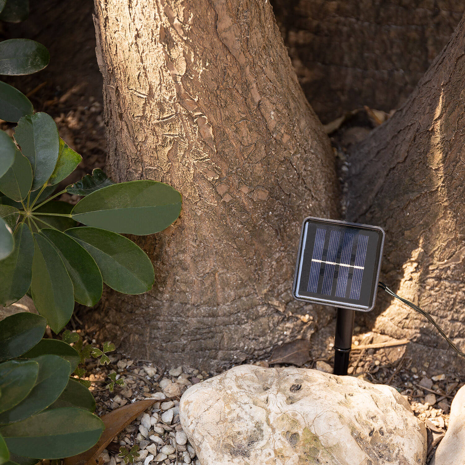La guirlande intègre un panneau solaire avec batterie Ni‑MH 400 mAh qui emmagasine l’énergie du jour pour illuminer la nuit jusqu’à environ huit heures. Un capteur crépusculaire active et désactive automatiquement l’éclairage, garantissant un fonctionnement autonome sans manipulation quotidienne supplémentaire.