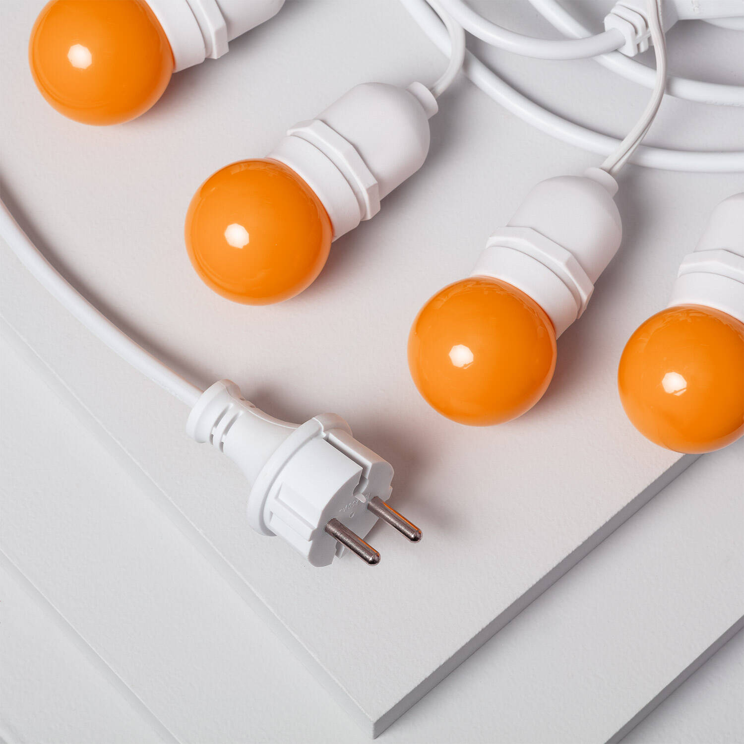 Kit Guirlande Waterproof 5.5m Blanche + 8 Ampoules LED E27 G45 3W de Couleurs Orange