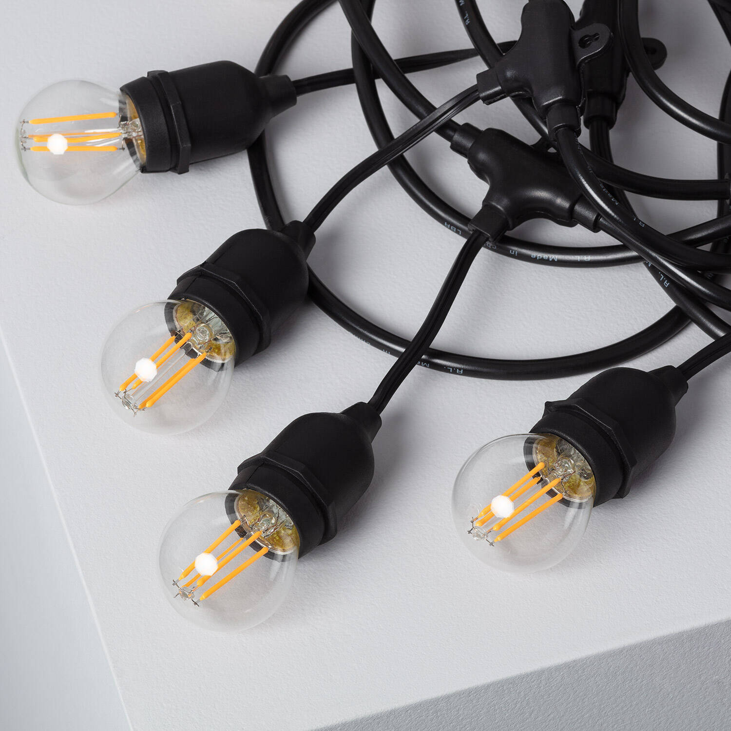 Les ampoules sont disposées régulièrement le long des 5,5 m de câble pour un rendu guinguette homogène. Vous pouvez remplacer les ampoules par d'autres modèles E27 pour changer l'ambiance, mais l'espacement des prises est fixe et visible sur la guirlande, ce qui facilite la pose décorative.