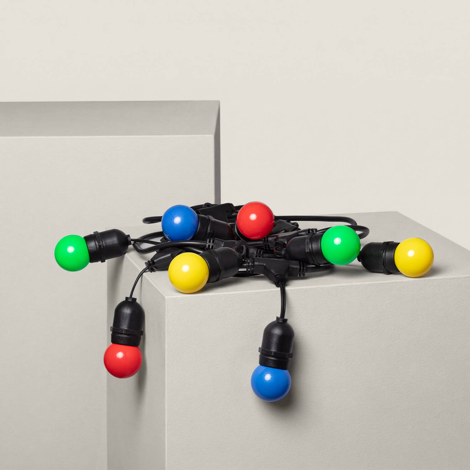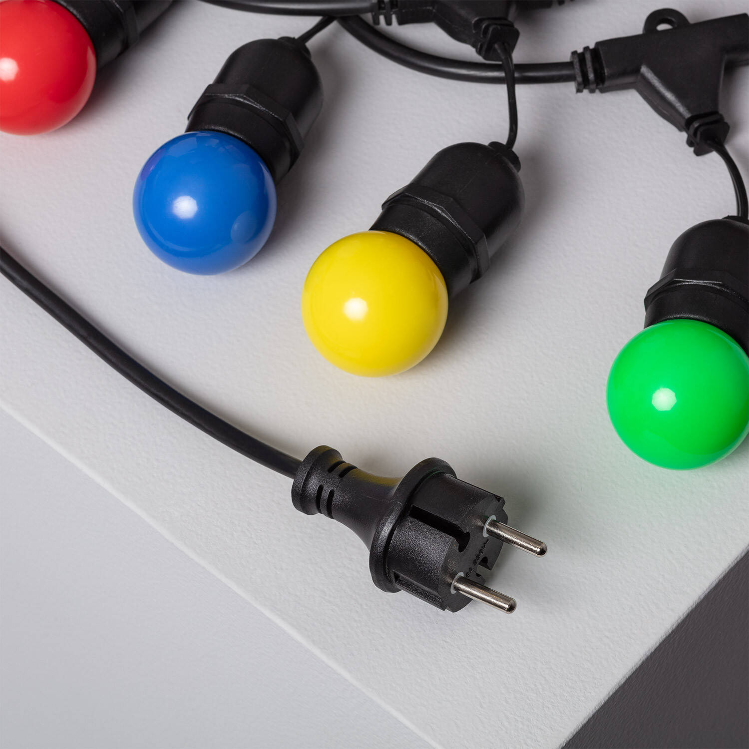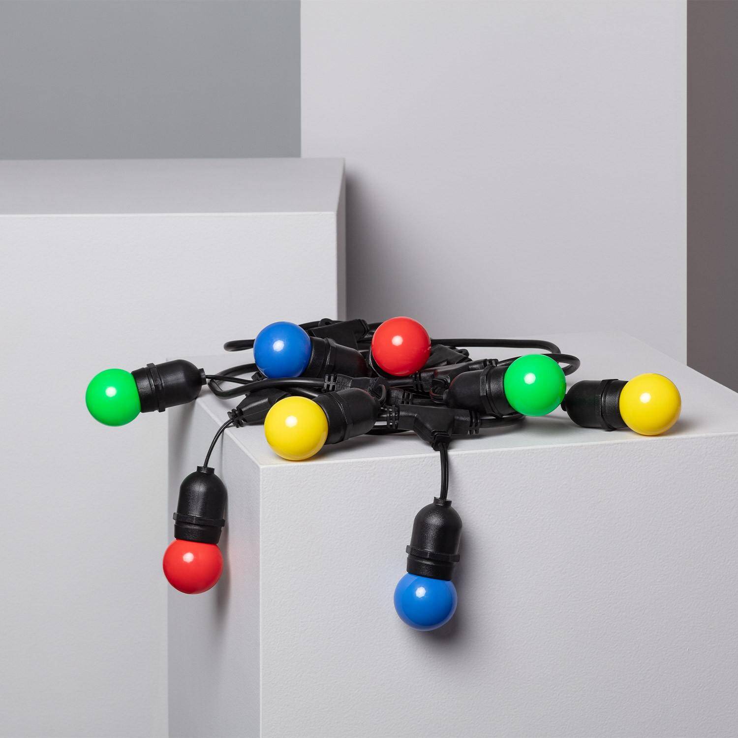 Les huit ampoules G45 multicolores incluses créent une palette festive, idéale comme guirlande guinguette pour terrasses et patios. Grâce à la compatibilité E27 et à la possibilité de remplacer les sources lumineuses, personnalisez intensité et style selon l’ambiance extérieure recherchée.