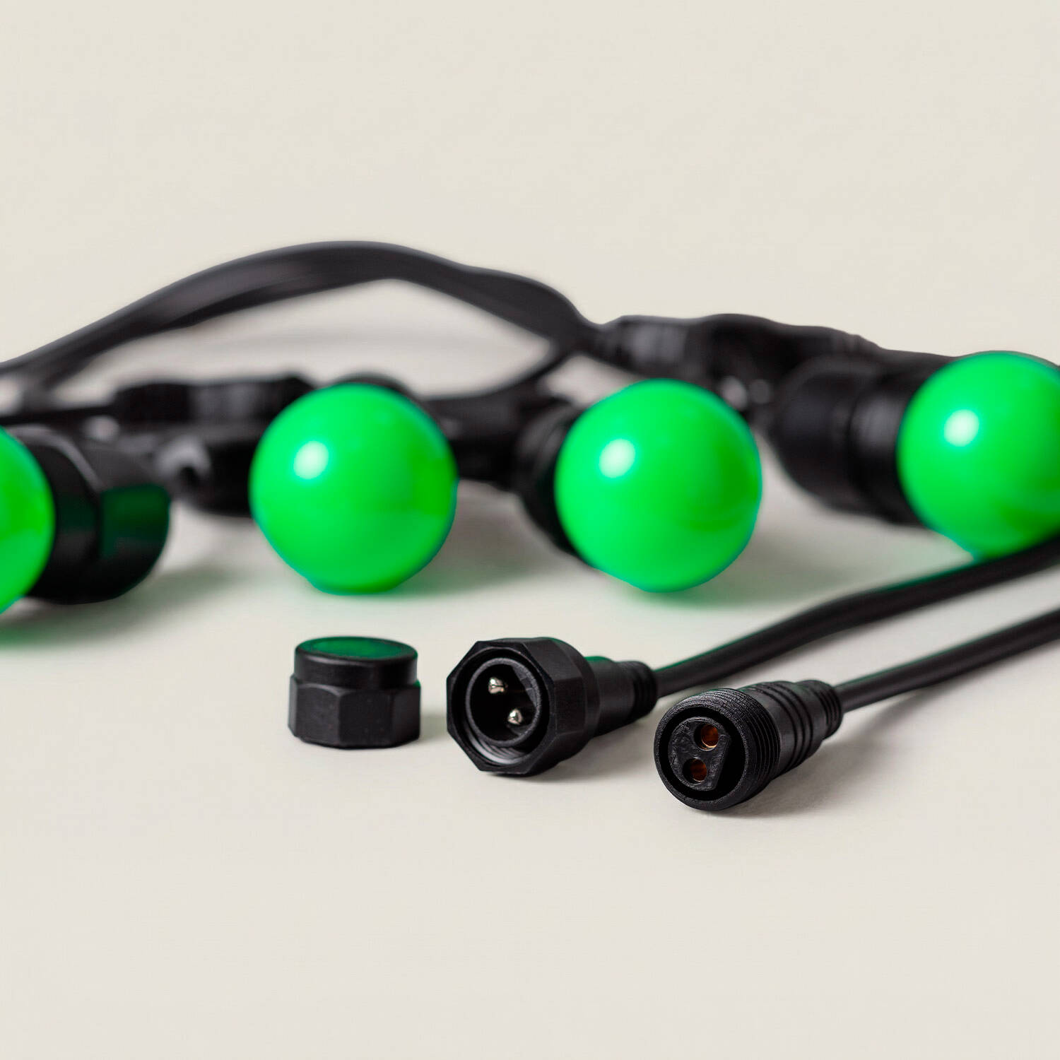 Chaque point lumineux est espacé d’environ 60 cm, offrant un rythme visuel équilibré sur 5,5 mètres. Les huit ampoules G45 vertes incluses créent une ambiance immersive, tandis que la douille E27 remplaçable permet de changer facilement l’apparence ou l’intensité selon l’événement ou la décoration.