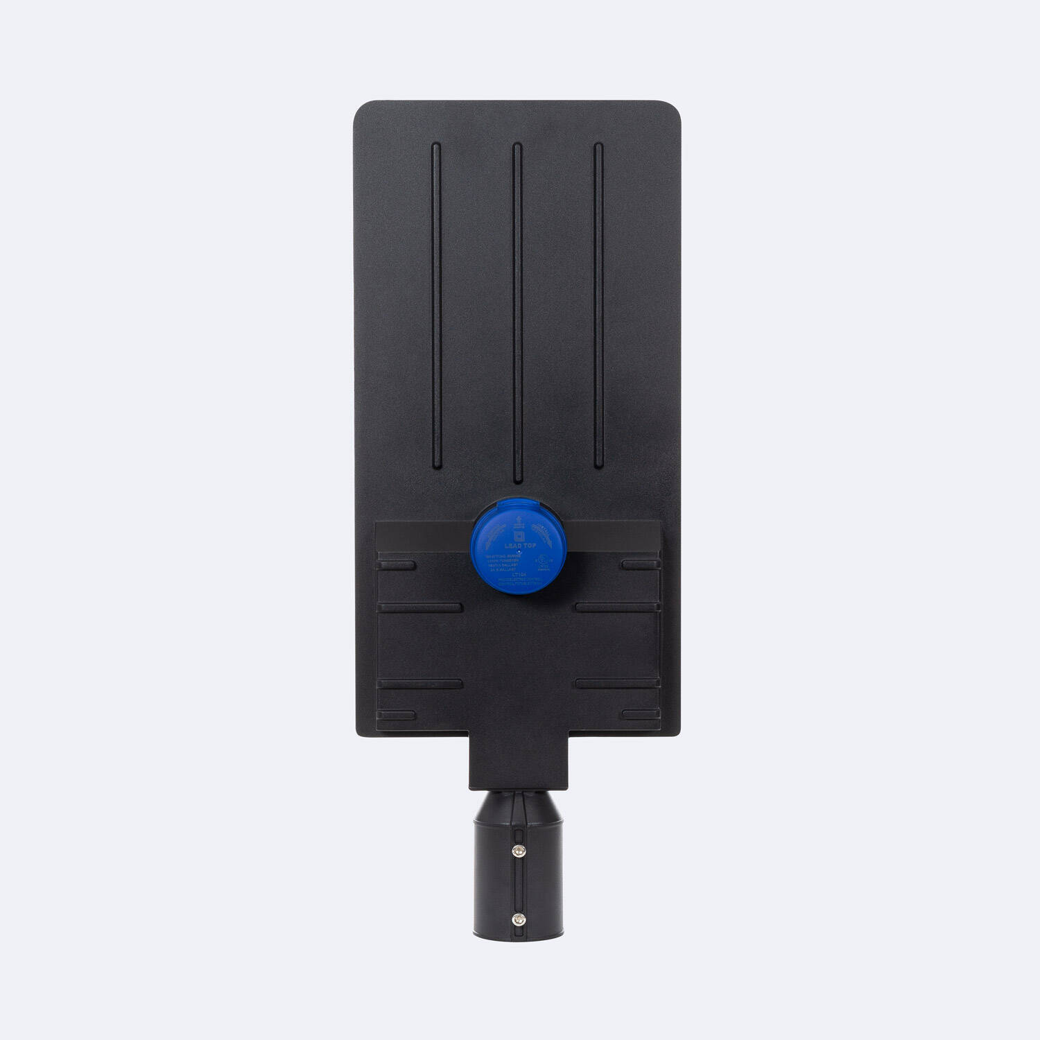 La tête est conçue pour un montage mât Ø60 mm avec fixation orientable, permettant un réglage précis de l’angle d’éclairage pour chaque voie. La source lumineuse est remplaçable, facilitant la maintenance sur le long terme sans nécessiter le remplacement complet du luminaire.