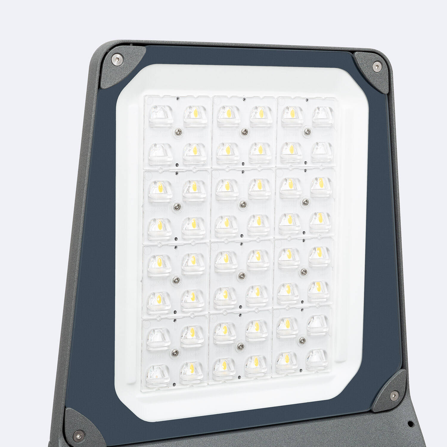 La source SMD5050 est intégrée et fournie avec le lampadaire, elle est par ailleurs remplaçable si nécessaire. Le produit délivre 18 000 lm en blanc neutre 4000 K avec un rendement de 180 lm/W et un indice de rendu des couleurs IRC 70, ce qui convient parfaitement pour l'éclairage de voirie et d'espaces publics.
