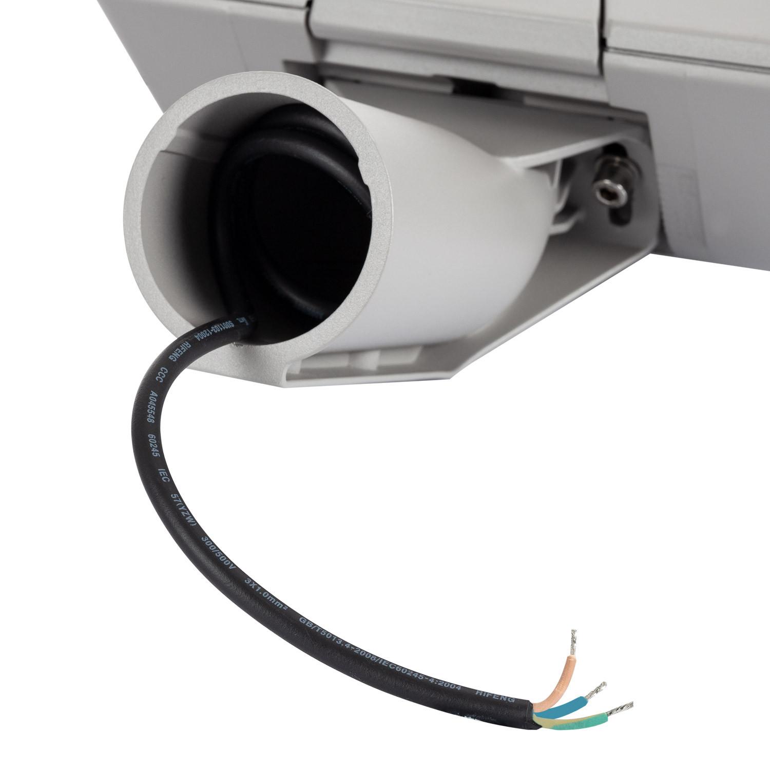Oui. Ce lampadaire LED 100W est conçu pour fixation Ø67.5 mm en entrée de mât de type slip fit. Le câble d'alimentation sort par un passage prévu et le driver Philips Xitanium est accessible sous le couvercle pour les connexions. Nous recommandons une installation par un électricien qualifié pour vérifier l'alignement et le serrage.