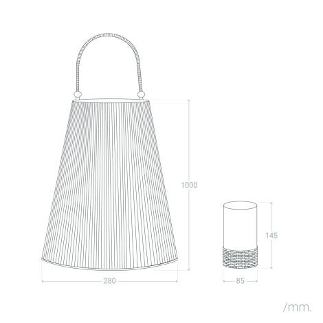 Le Nora affiche un esthétisme naturel en corde de chanvre et une teinte naturelle qui s’harmonisent avec tout décor extérieur. Sa silhouette conique et sa poignée intégrée facilitent le déplacement, offrant un objet d’éclairage à la fois décoratif et fonctionnel pour vos espaces de vie extérieurs.