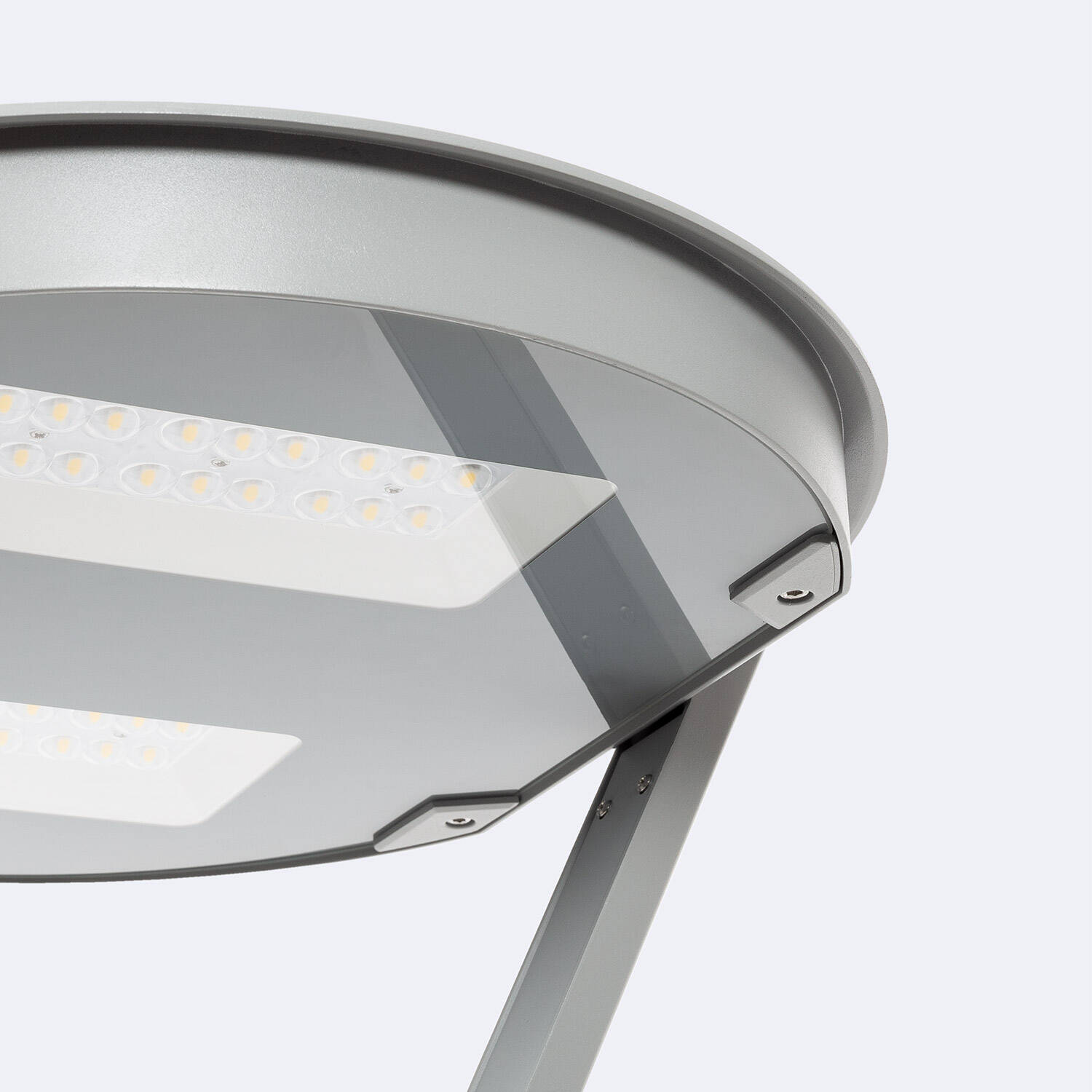 Sa silhouette contemporaine et sa finition grise s’intègrent avec discrétion dans les espaces publics. Le design plat et soigné limite l’impact visuel tout en offrant un encombrement maîtrisé, idéal pour valoriser l’environnement urbain et améliorer la perception de sécurité nocturne.