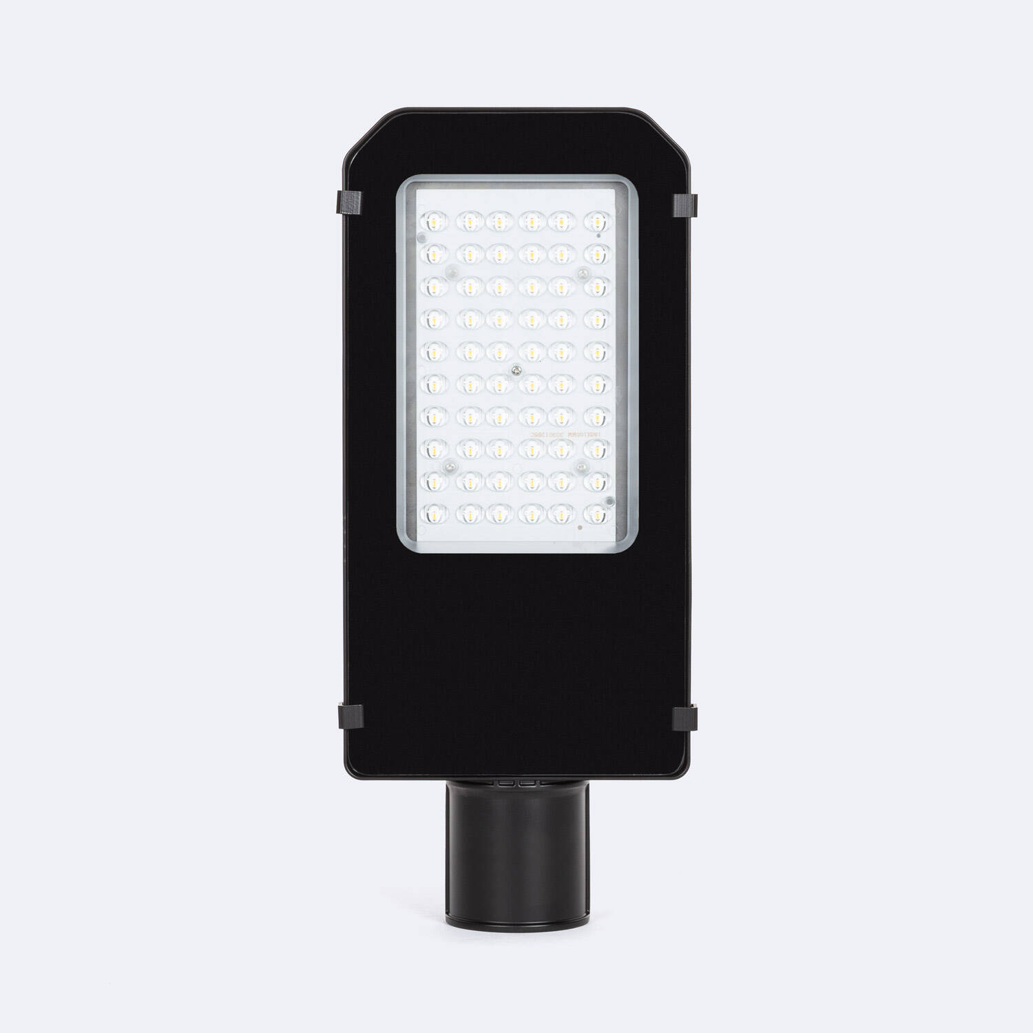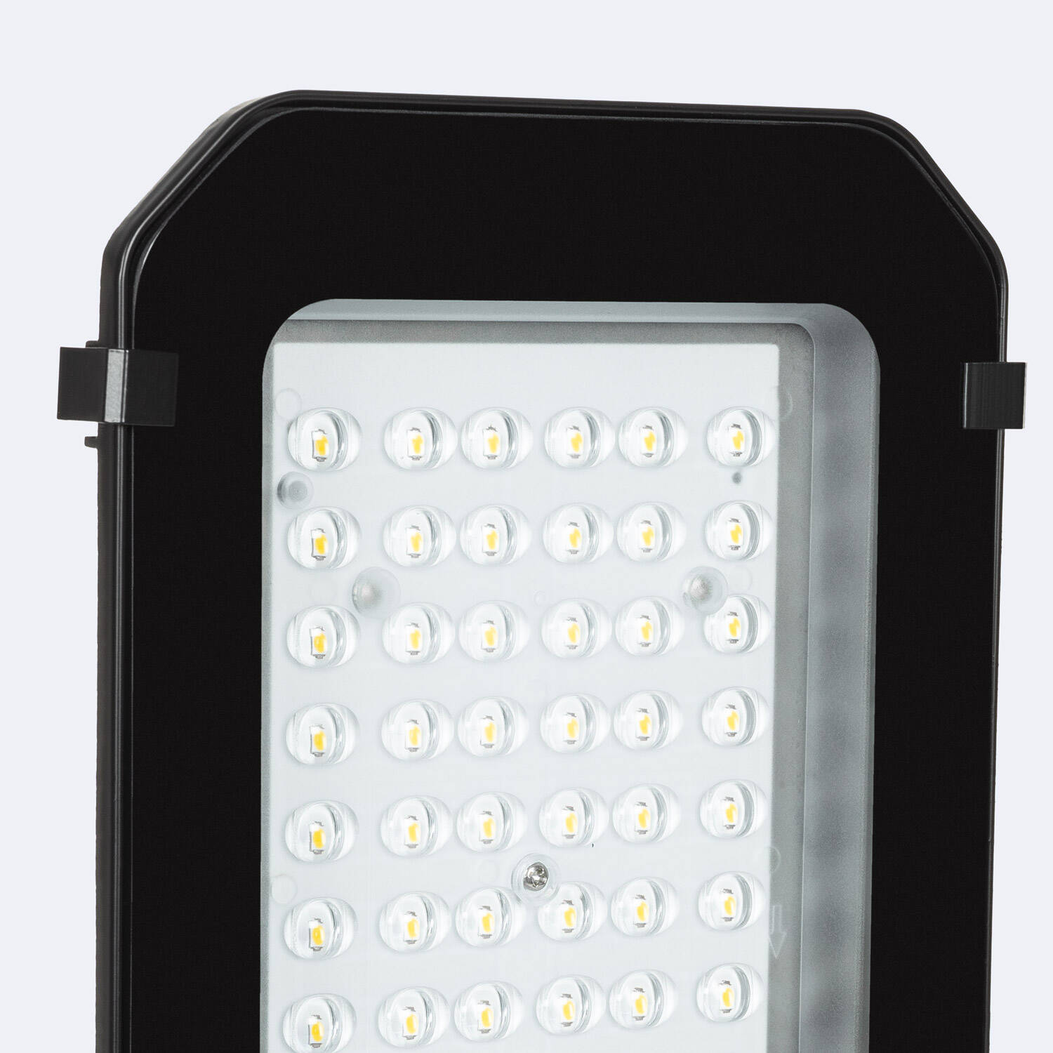 Ce lampadaire LED 40W Harlem noir pour éclairage extérieur et public diffuse un blanc froid 6000K puissant et homogène, idéal pour rues, parkings et voies de circulation. Son module OSRAM offre 5200 lm avec optique asymétrique, tandis que sa conception en aluminium et verre IP65 assure une excellente tenue en extérieur.