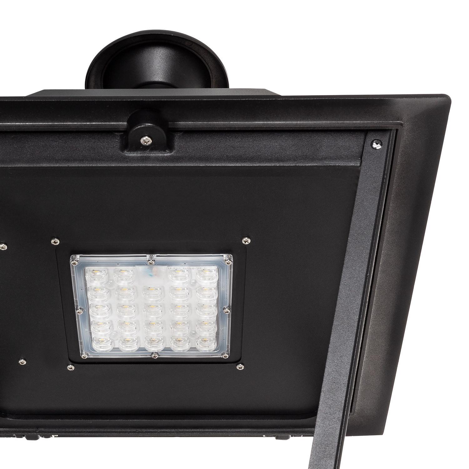 Le lampadaire fournit 6000 lm avec une puissance de 40 W et une température de couleur blanc neutre 4000K, offrant un rendu lumineux efficace et naturel. L'optique asymétrique 100º x 68º permet un éclairage orienté pour les allées et chaussées tout en optimisant la répartition lumineuse.