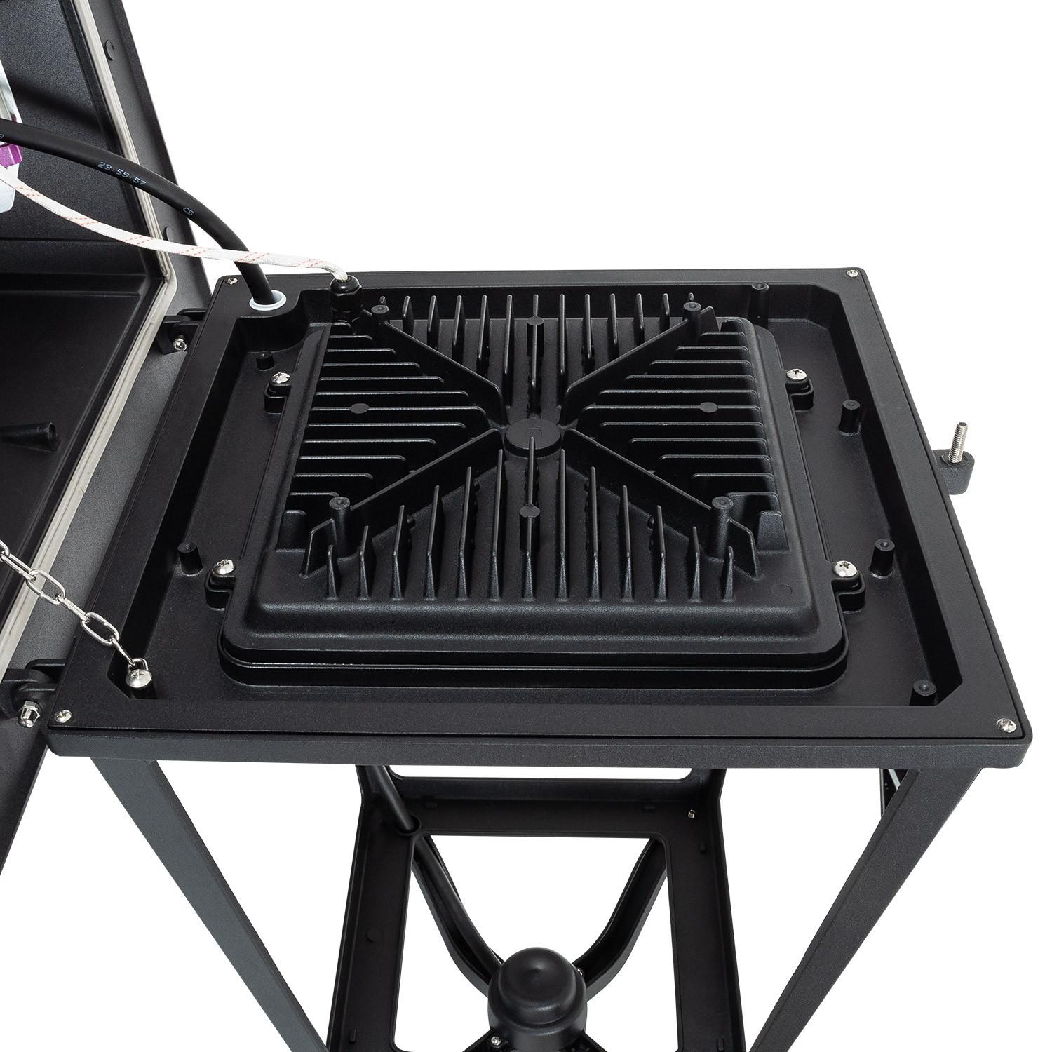 Le corps en aluminium moulé par injection et le verre trempé offrent un équilibre parfait entre esthétique et dissipation thermique. Finition RAL 9011 noire, design compact de 440 mm de hauteur et fixation Ø76 mm assurent intégration élégante sur mâts publics et espaces paysagers.