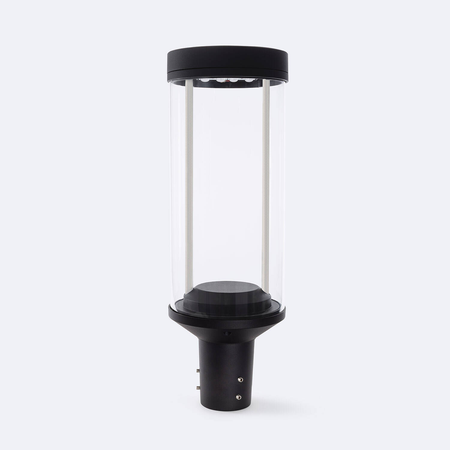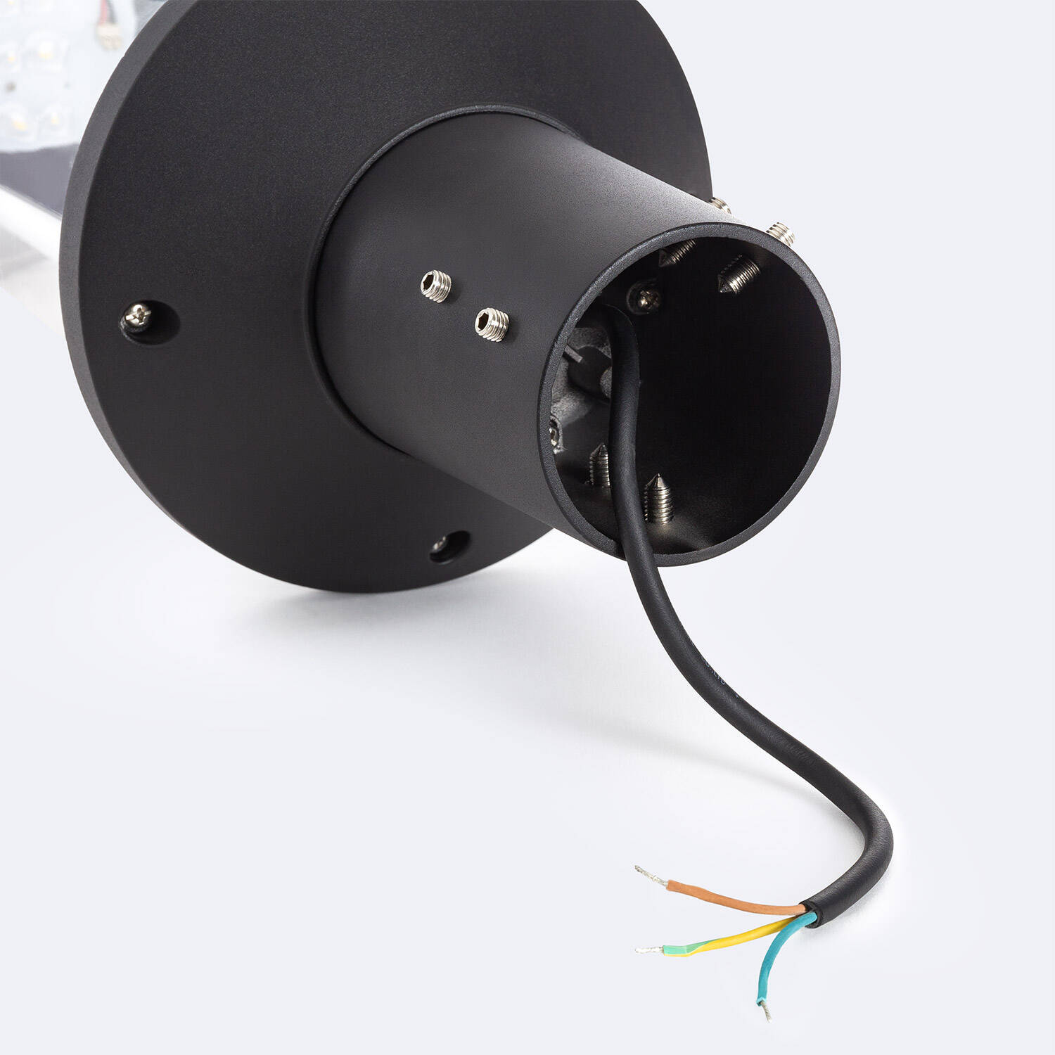 La fixation s'effectue par emmanchement sur une douille adaptée aux diamètres indiqués Ø79 mm x Ø89 mm. Le câble d'alimentation sort par la base comme visible sur les photos, vérifiez la compatibilité mécanique avec votre poteau et prévoyez un électricien pour le branchement.