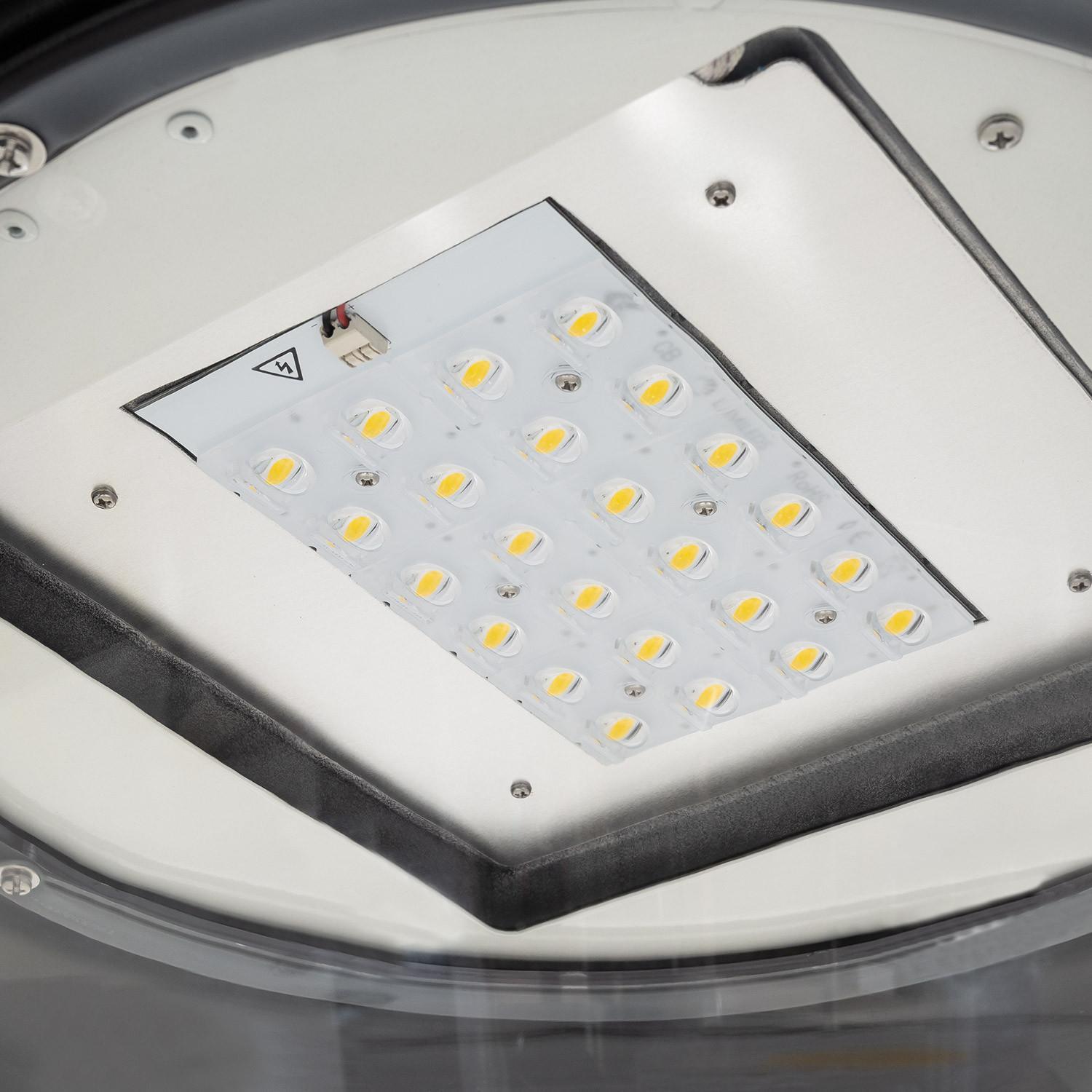 Les optiques asymétriques 160ºx60º concentrent la lumière là où elle sert, améliorant visibilité et confort visuel tout en limitant l’éblouissement. Avec un rendu chaleureux à 2700K et un rendement élevé, le lampadaire éclaire uniformément trottoirs et voiries pour une perception plus sûre des espaces publics.