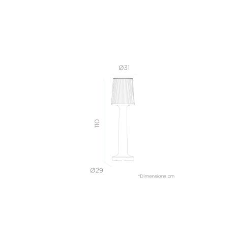 Sa silhouette élancée et son abat-jour cannelé apportent une touche sophistiquée à tout aménagement extérieur. Léger et mobile, il se pose facilement sans travaux électriques lourds, offrant une présence lumineuse élégante aussi bien pour des espaces privés que professionnels et s’intègre harmonieusement aux décors contemporains.