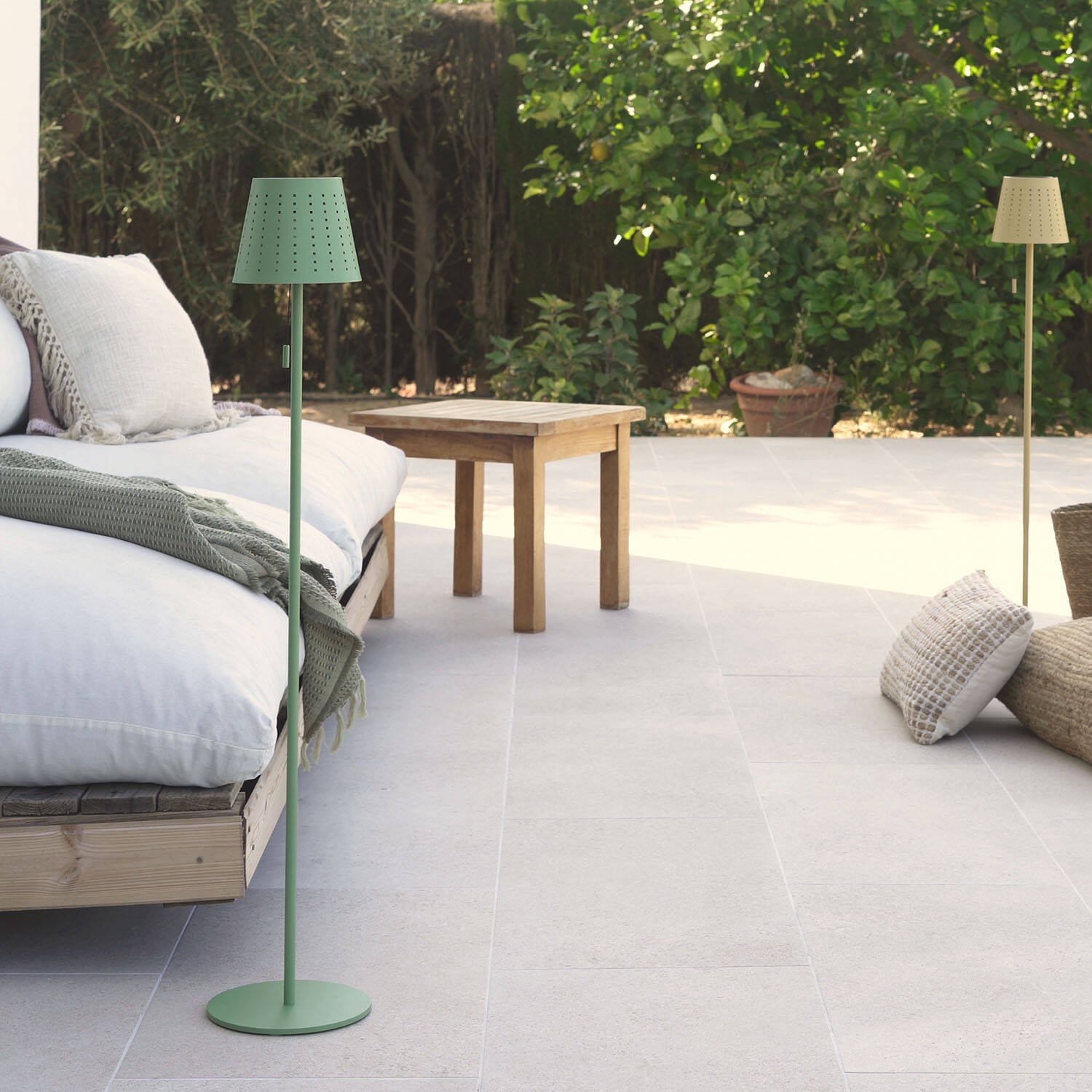 Le design simple et épuré en métal, finition Vert Céladon, apporte une touche moderne et apaisante à vos extérieurs. Avec une hauteur étudiée, ce lampadaire s’intègre discrètement sur balcon, véranda ou allée, tout en devenant un élément décoratif raffiné et durable.
