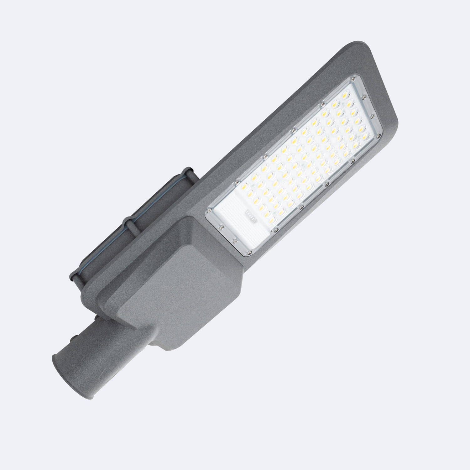 Avec une puissance nominale de 25 W et un rendement de 140 lm/W, ce lampadaire produit 3500 lm uniformes grâce à un module de 66 LED. L’optique asymétrique 70ºx140º répartit la lumière sans éblouir, idéale pour voies publiques et zones piétonnes.