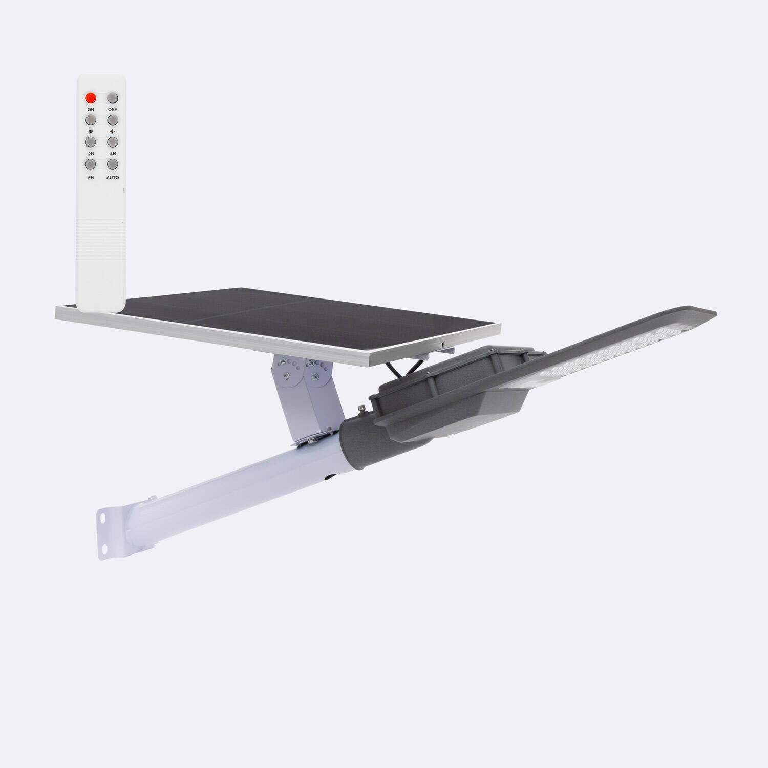 La télécommande est incluse avec le lampadaire solaire Naxus pour piloter à distance l'éclairage et les modes disponibles. Le produit ne propose pas de connectivité WiFi, la commande à distance se fait uniquement via la télécommande fournie.