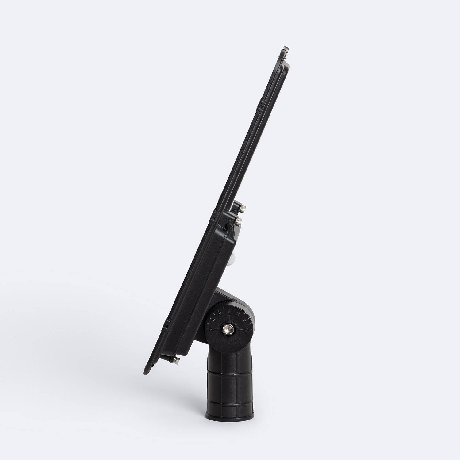 Le lampadaire LED solaire Sinaí se fixe sur un poteau de diamètre Ø60 mm via son embase orientable visible sur les photos. Positionnez l'appareil sur le poteau, serrez les fixations et réglez l'angle du module solaire grâce à la rotule pour optimiser l'ensoleillement. Orientez le panneau solaire vers le sud ou l'exposition la plus ensoleillée et assurez-vous que rien n'occulte le panneau pour garantir une charge optimale.
