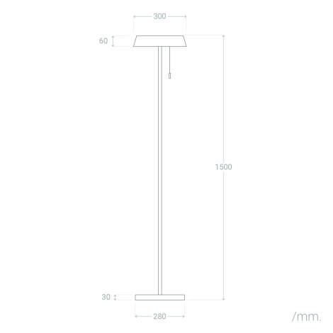 Le lampadaire Aldana se pose comme un lampadaire sur pied stable sur une surface plane grâce à sa base intégrée. Sa hauteur est de 1500 mm et le diffuseur a un diamètre de 300 mm pour un bon dégagement. Aucun raccordement au réseau n'est nécessaire puisqu'il fonctionne sur panneau solaire intégré et batterie Li-ion. Pour une installation permanente ou une fixation au sol, contactez notre service client pour les accessoires recommandés.