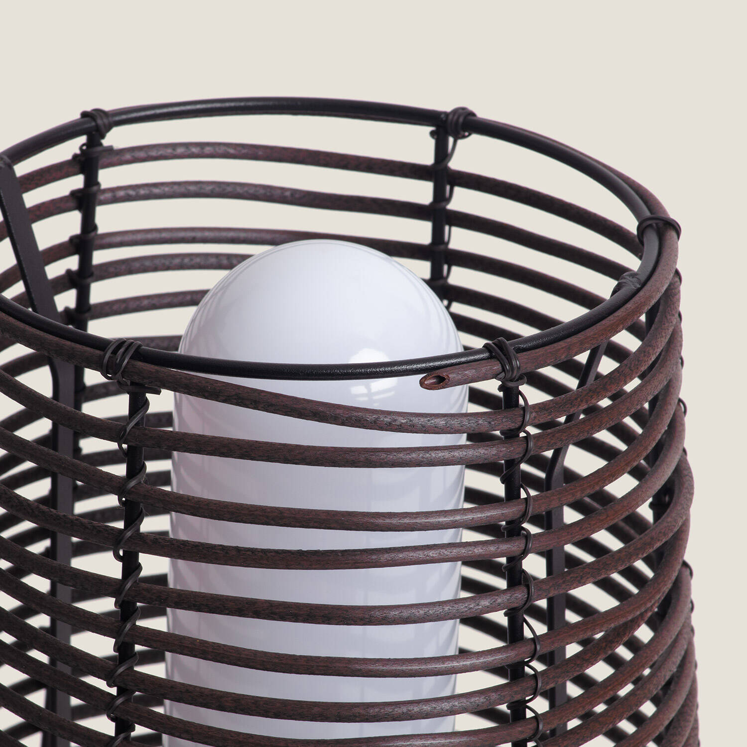 Les finitions en filaments de PE et diffuseur intérieur en plastique offrent une esthétique soignée et une résistance aux usages extérieurs. Avec une hauteur de 530 mm et un diamètre harmonieux, la lampe Asha Brun présente des proportions étudiées pour s’intégrer aux ambiances contemporaines et végétales.
