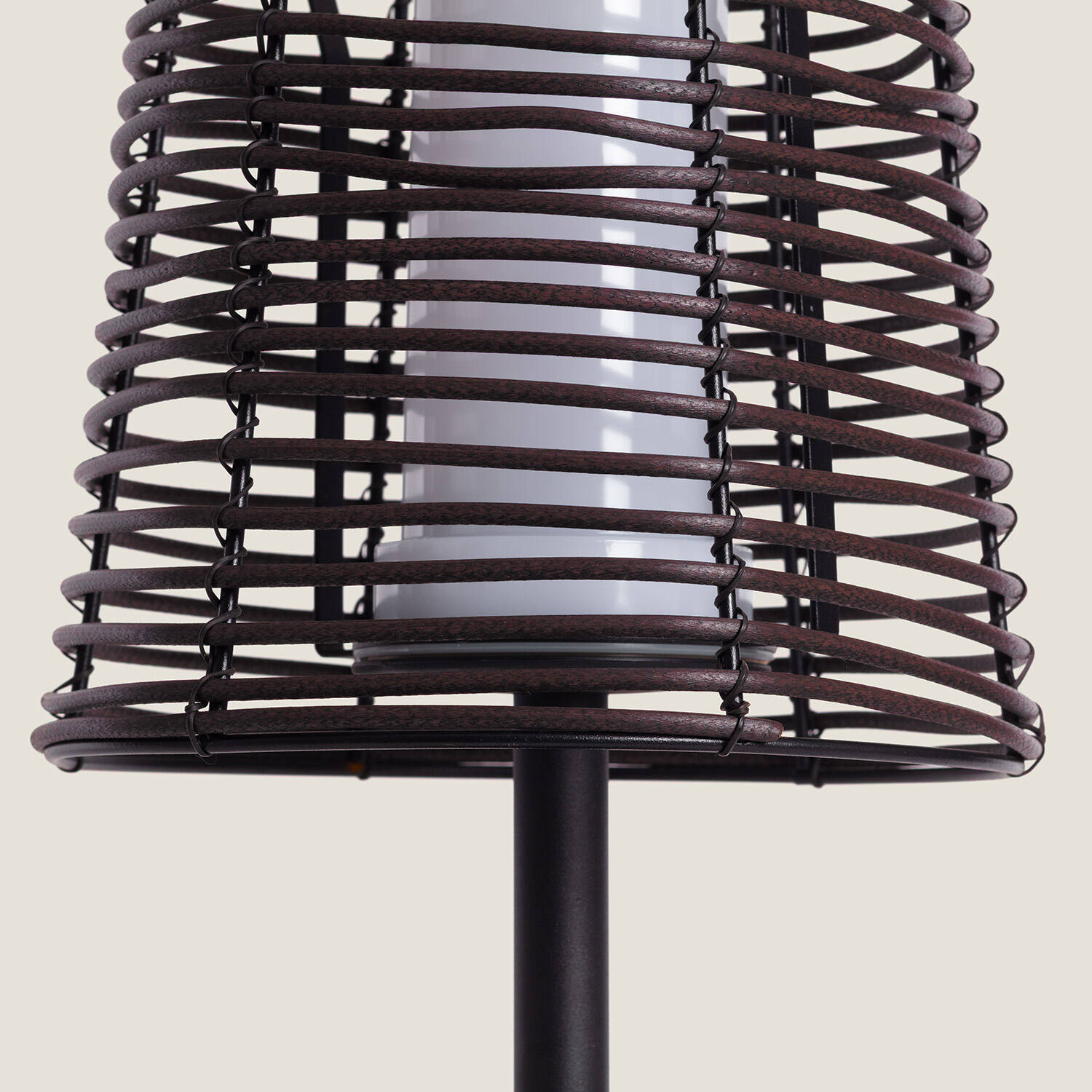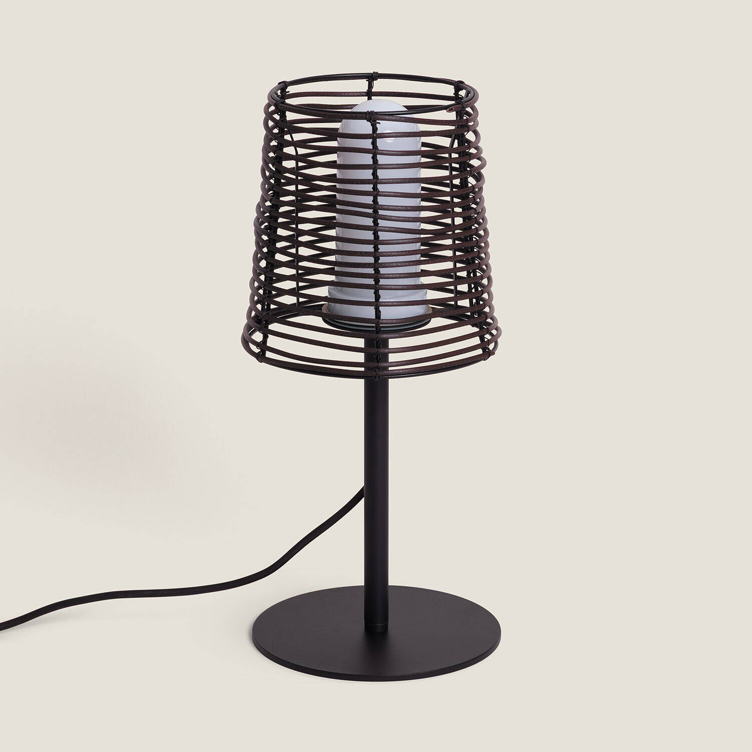 La Lampe à Poser Extérieure Asha Brun mesure 530 mm de hauteur pour un diamètre de 224 mm et contient un point de lumière unique avec diffuseur intérieur pour un éclairage d'ambiance doux. Son abat-jour tressé en PE crée un rendu chaleureux idéal pour table de jardin, terrasse ou coin cosy intérieur.