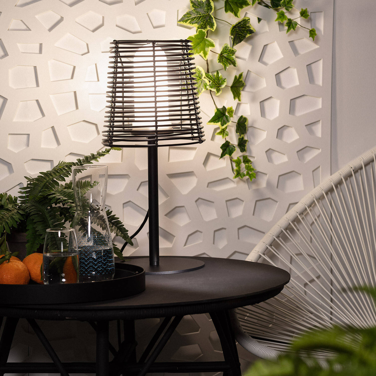 Lampe à Poser Extérieure Asha Noir — élégance nomade pour terrasses et intérieurs