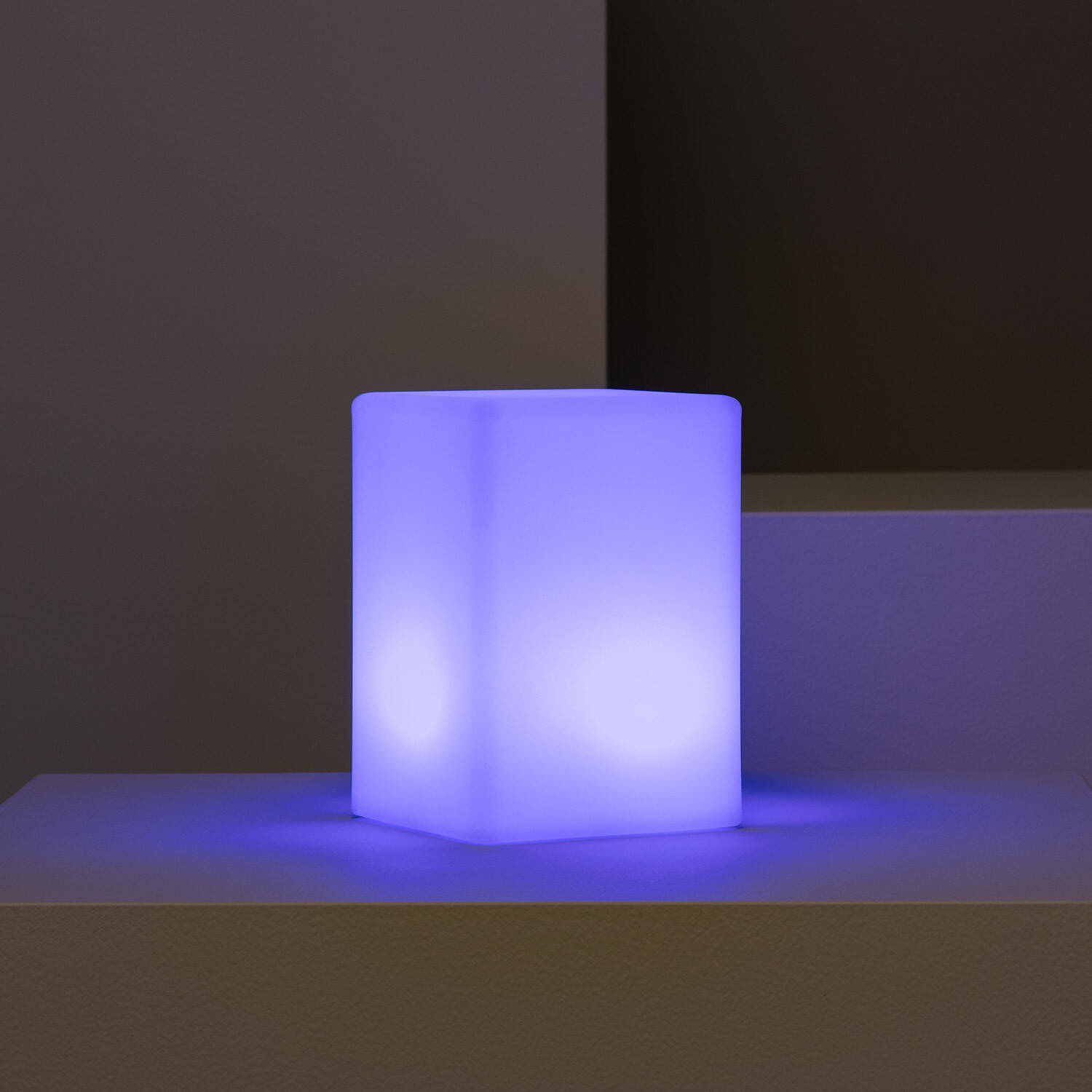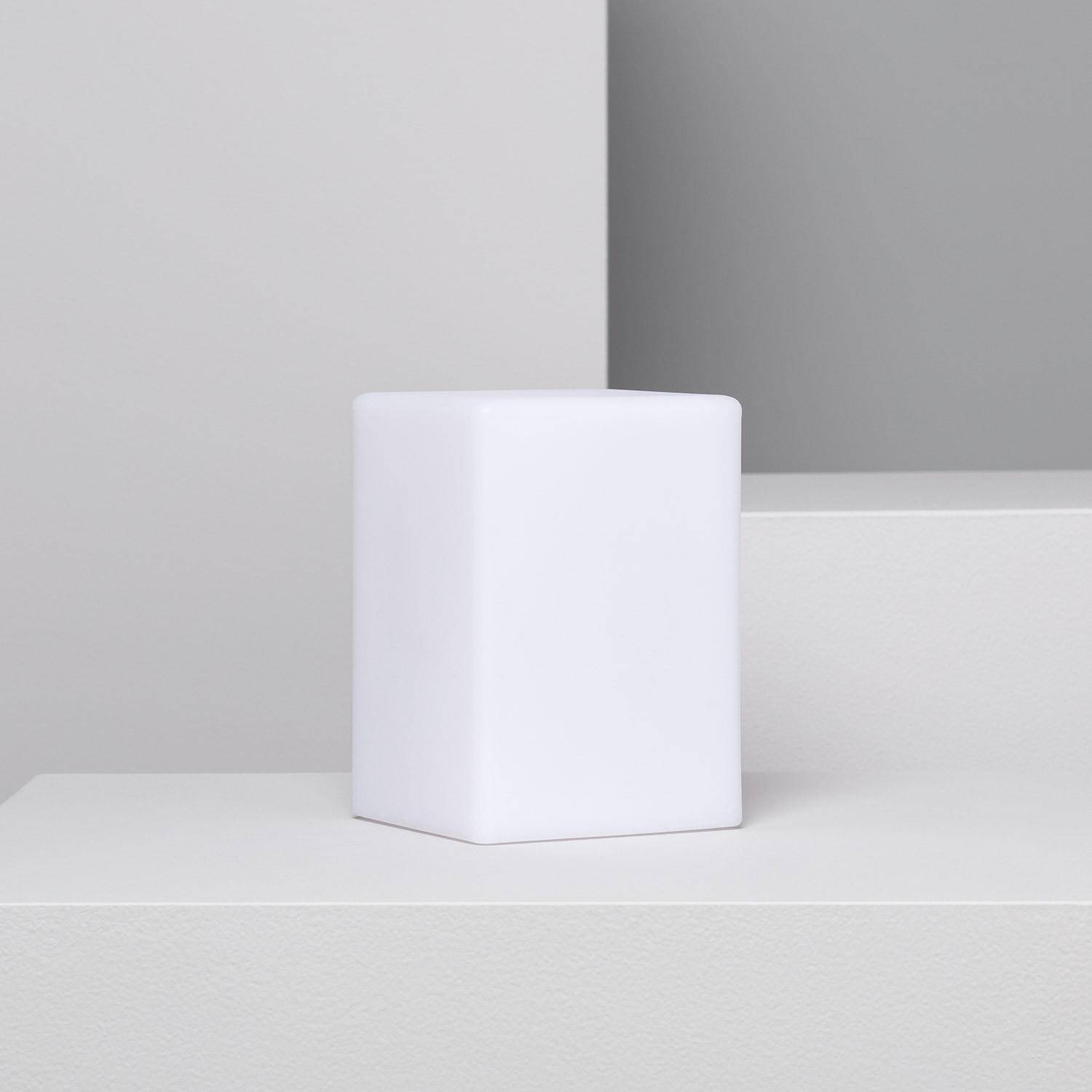 Son corps blanc en PE diffuse la lumière de manière homogène et met en valeur son design cubique sobre. Cette lampe LED s’intègre avec discrétion dans des univers variés, du mobilier de jardin contemporain aux intérieurs épurés, en apportant une note lumineuse raffinée.