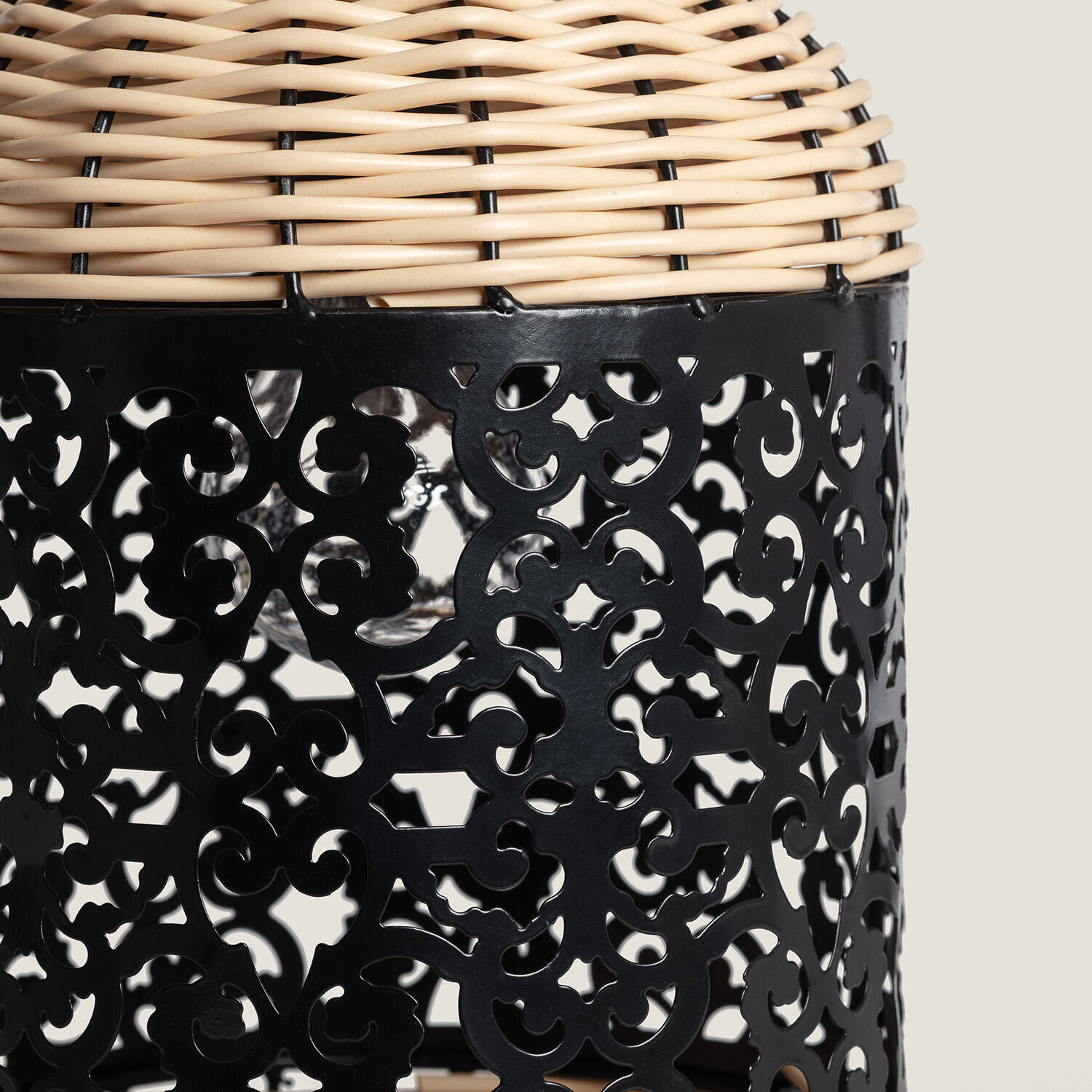 Avec son format compact et ses 180x180x300 mm, Agra se transporte aisément et trouve sa place sur tables ou au sol. L’association du tressage naturel et du métal noir crée un contraste élégant qui sublime tout décor intérieur ou extérieur, en apportant une touche exotique.