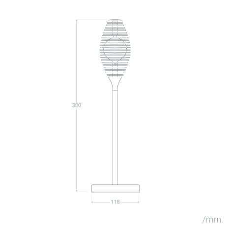 Son piètement métallique noir et son abat-jour sculpté révèlent un design minimaliste, pensé pour sublimer tous les intérieurs. Avec une silhouette élancée de 38 cm de hauteur et un diamètre discret, elle s’intègre naturellement sur une table, un bureau ou une petite console extérieure.