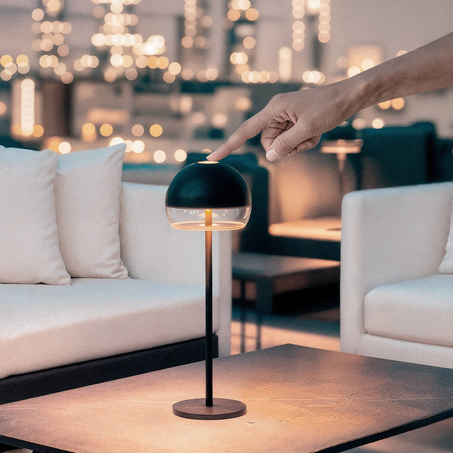 La lampe à poser LED portable Adair noir apporte un éclairage extérieur élégant et chaleureux sur une terrasse, un balcon ou une table de jardin. Sans fil, rechargeable en USB-C et dimmable par touche, elle diffuse une lumière blanc chaud 3000K avec jusqu’à 8 à 12 heures d’autonomie, en intérieur comme en extérieur grâce à sa protection IP54.
