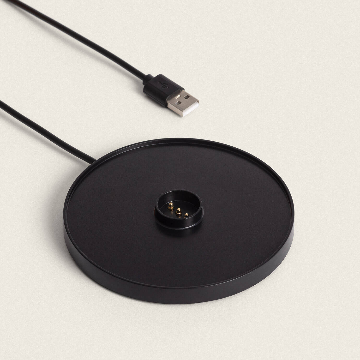 La lampe se recharge sur son socle de charge à contact. Un câble USB est inclus dans la boite pour brancher le socle à un adaptateur USB, à une powerbank ou à un port USB d'ordinateur.