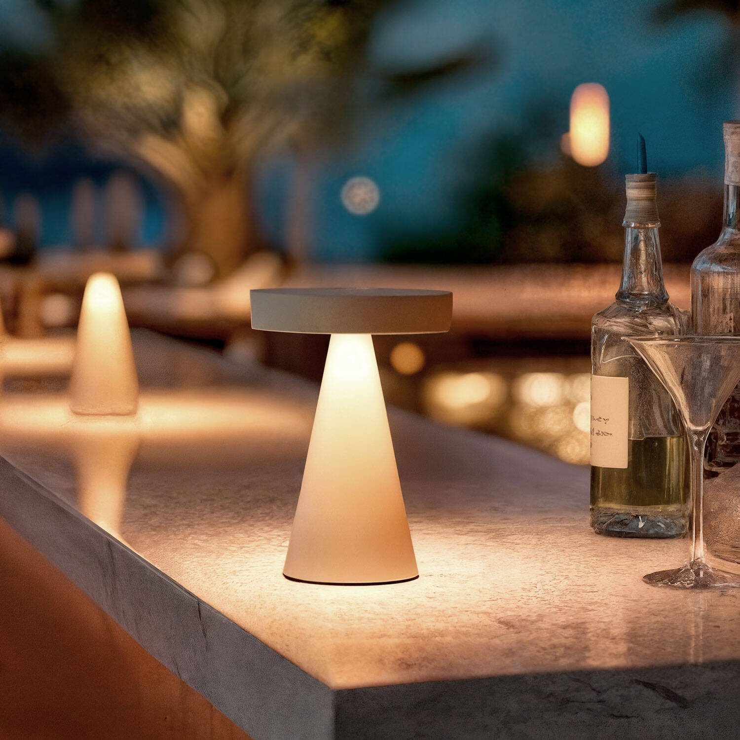 La lampe à poser LED portable extérieure Catinca beige séduit par son design épuré et sa silhouette contemporaine. Sans fil et rechargeable en USB-C, elle diffuse une lumière blanc chaud idéale sur une table de terrasse, un balcon ou en intérieur. Son variateur tactile et sa protection IP54 renforcent son usage nomade au quotidien.