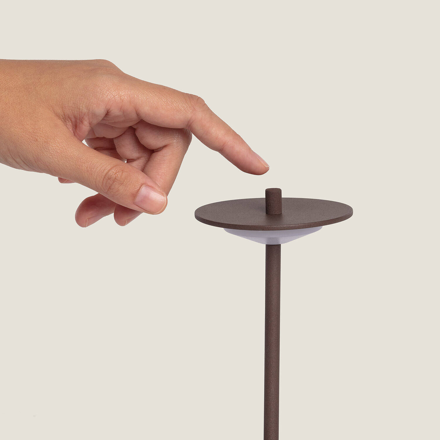 Façonnée en métal, la lampe conjugue finesse esthétique et robustesse fonctionnelle. Sa protection IP44 la rend adaptée aux projections d’eau et aux usages extérieurs, tandis que les finitions brunées s’intègrent naturellement aux ambiances contemporaines et raffinées de jardin ou terrasse.