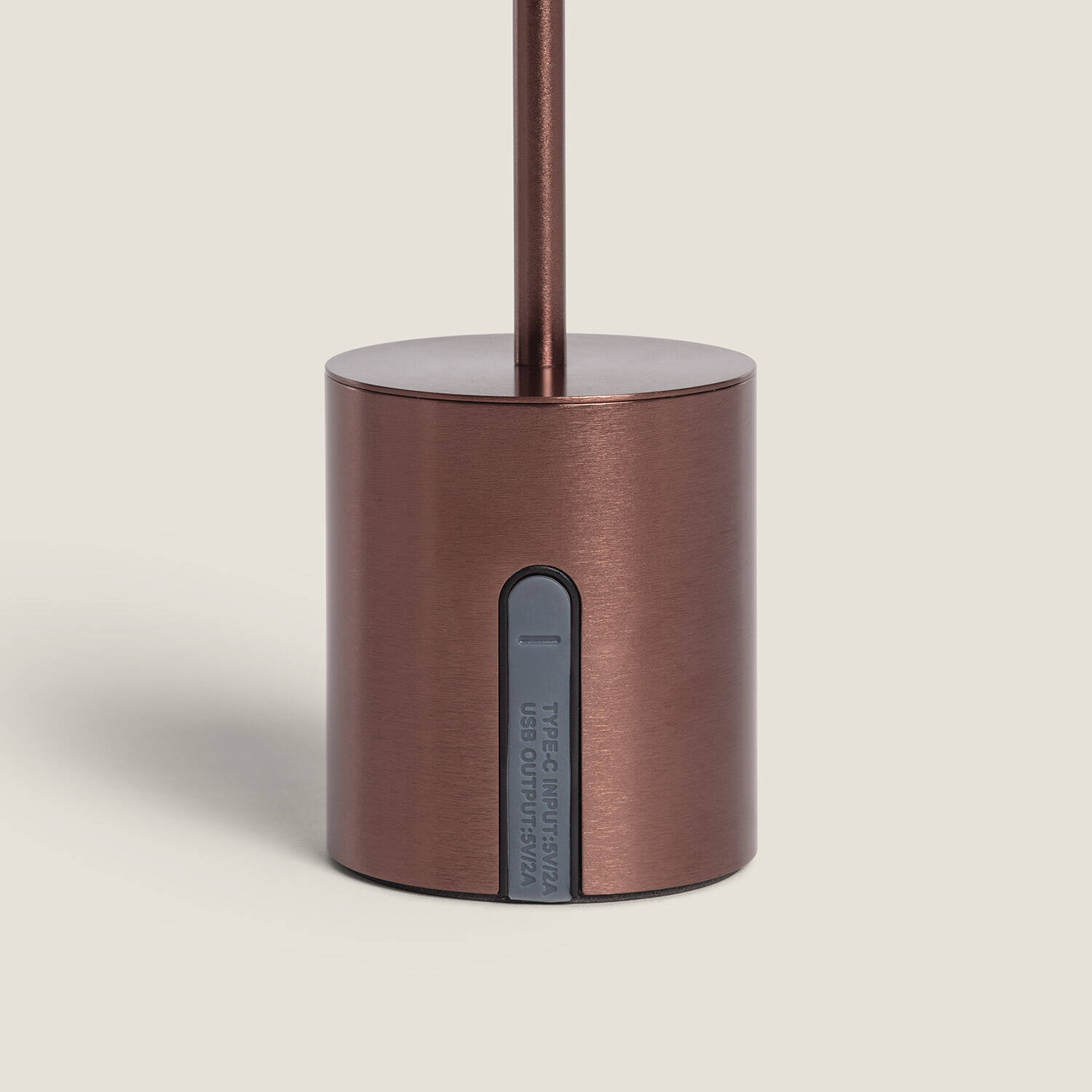 Son esthétique bronze en métal affirme un style contemporain, apportant une touche sophistiquée à tous les espaces extérieurs. Haute de 250 mm et au diamètre discret, elle se situe naturellement sur une table sans encombrer, tandis que le câble USB de 1 m facilite son utilisation lors de la recharge.