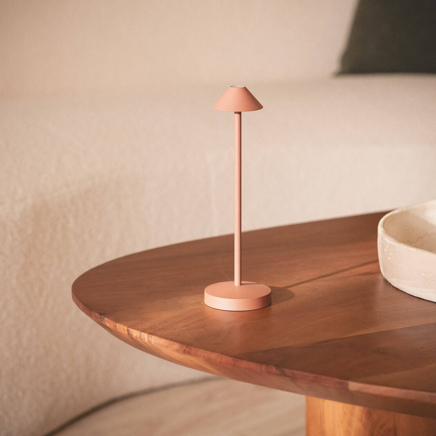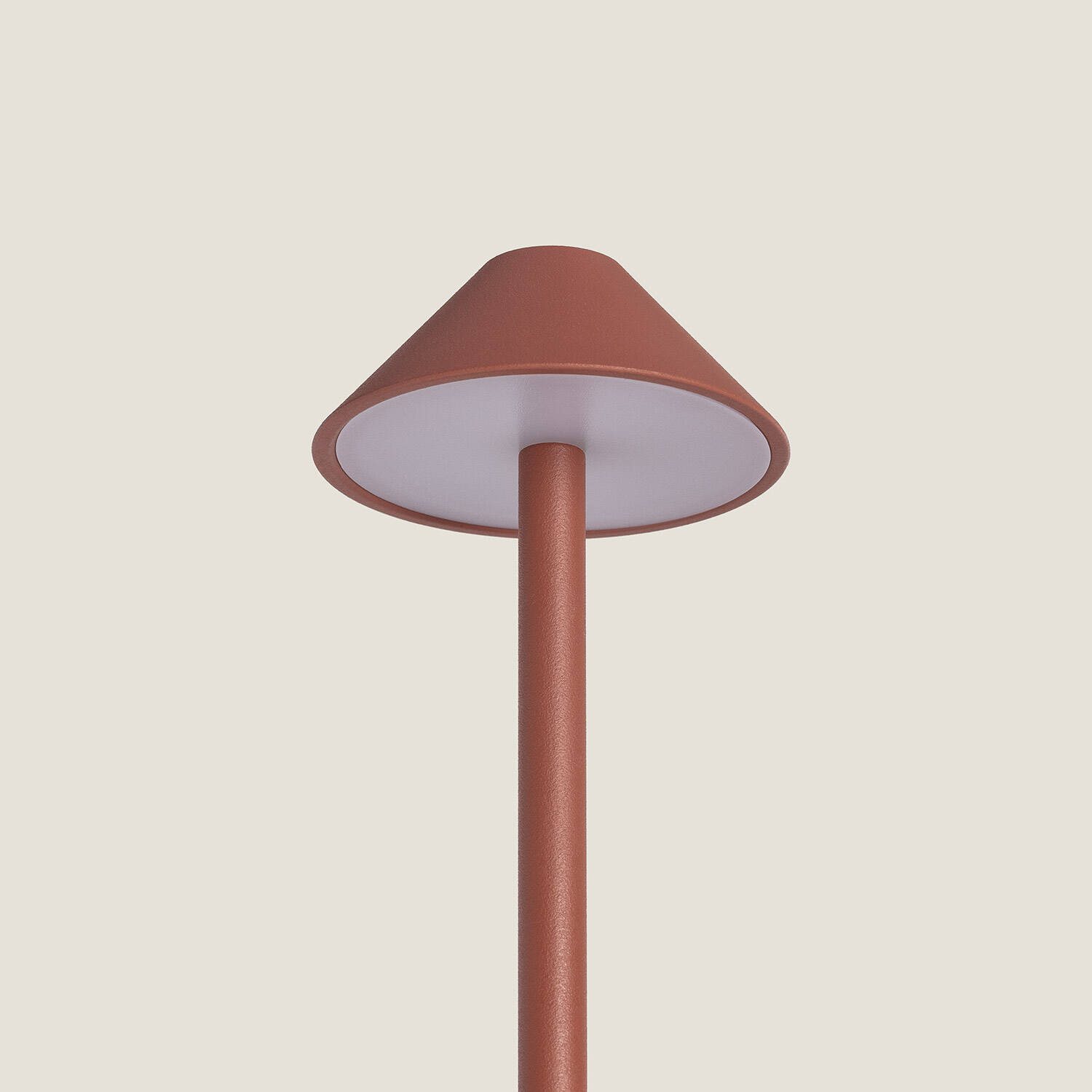 La lampe à poser LED portable extérieure Magatzi en métal terre cuite apporte une lumière blanc chaud douce et conviviale sur une table, une terrasse ou un balcon. Rechargeable par USB-C, sans fil et dimmable au toucher, elle se déplace facilement en intérieur comme en extérieur grâce à son format compact et sa protection IP44.