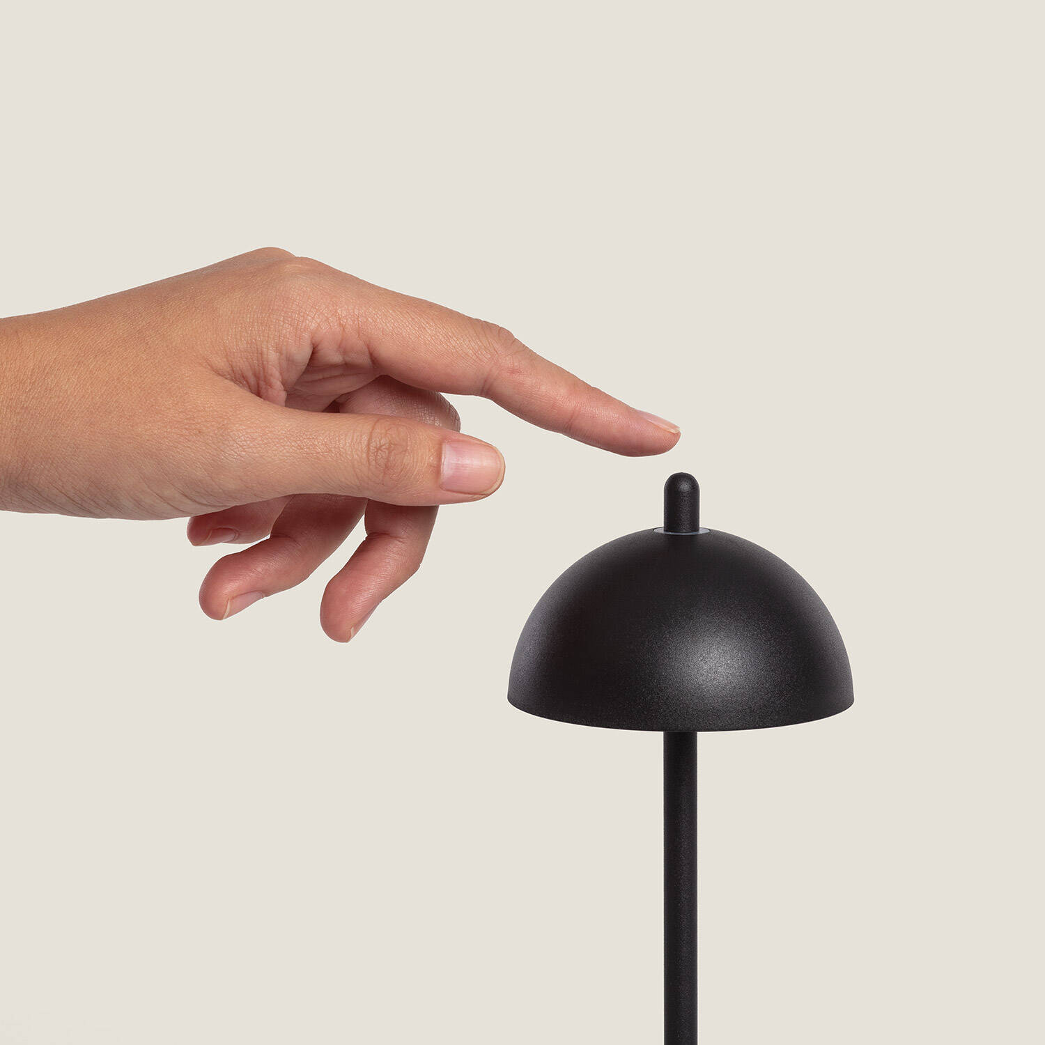 L'allumage et la variation se font par commande tactile située sur le dessus du dôme. Un simple appui permet d'allumer ou d'éteindre la lampe et des pressions successives modulent l'intensité pour créer une ambiance chaleureuse en extérieur ou en intérieur.