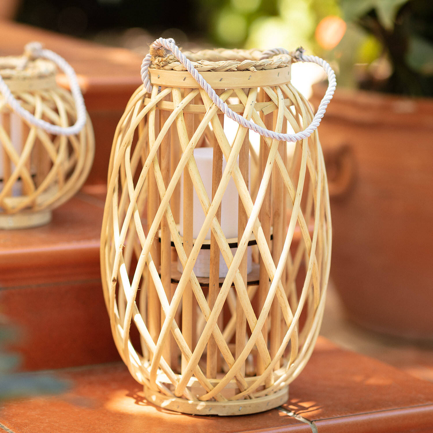 La lampe à poser LED portable Rotin Big Alejandría apporte une touche naturelle et bohème à l’éclairage extérieur comme intérieur. Son tressage en rotin, sa lumière blanc chaud et sa poignée nomade créent une ambiance douce sur terrasse, balcon ou salon. Fonctionne avec 3 piles AAA non incluses et résiste aux éclaboussures IP44.