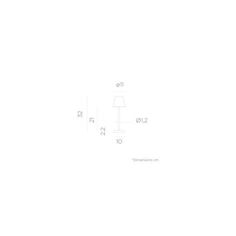 Finition laiton délicate, abat-jour opalin et matériaux résistants aux UV procurent un aspect sophistiqué et constant. Sa silhouette élancée et diamètre compact offrent une présence subtile sur table ou terrasse, tout en restant facile à associer aux autres déclinaisons de couleur disponibles.