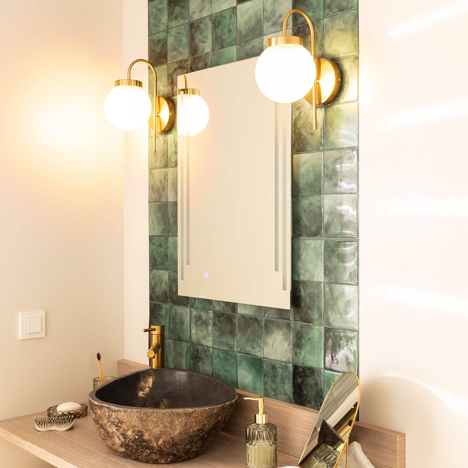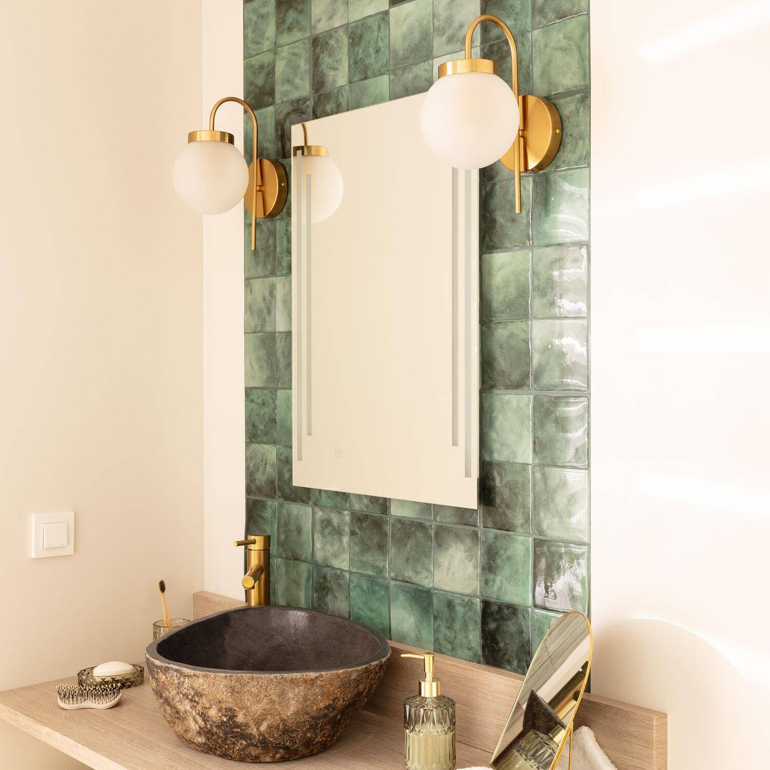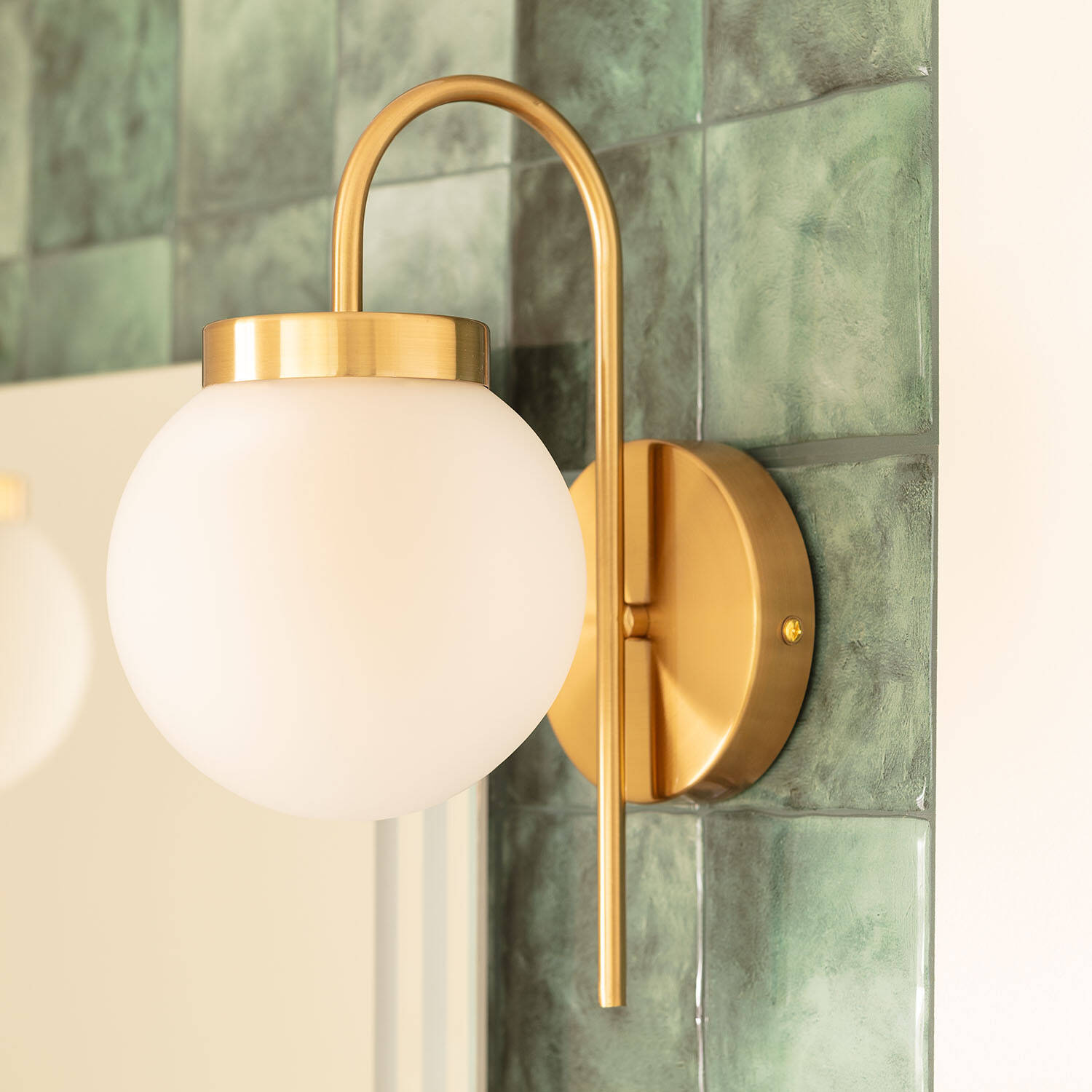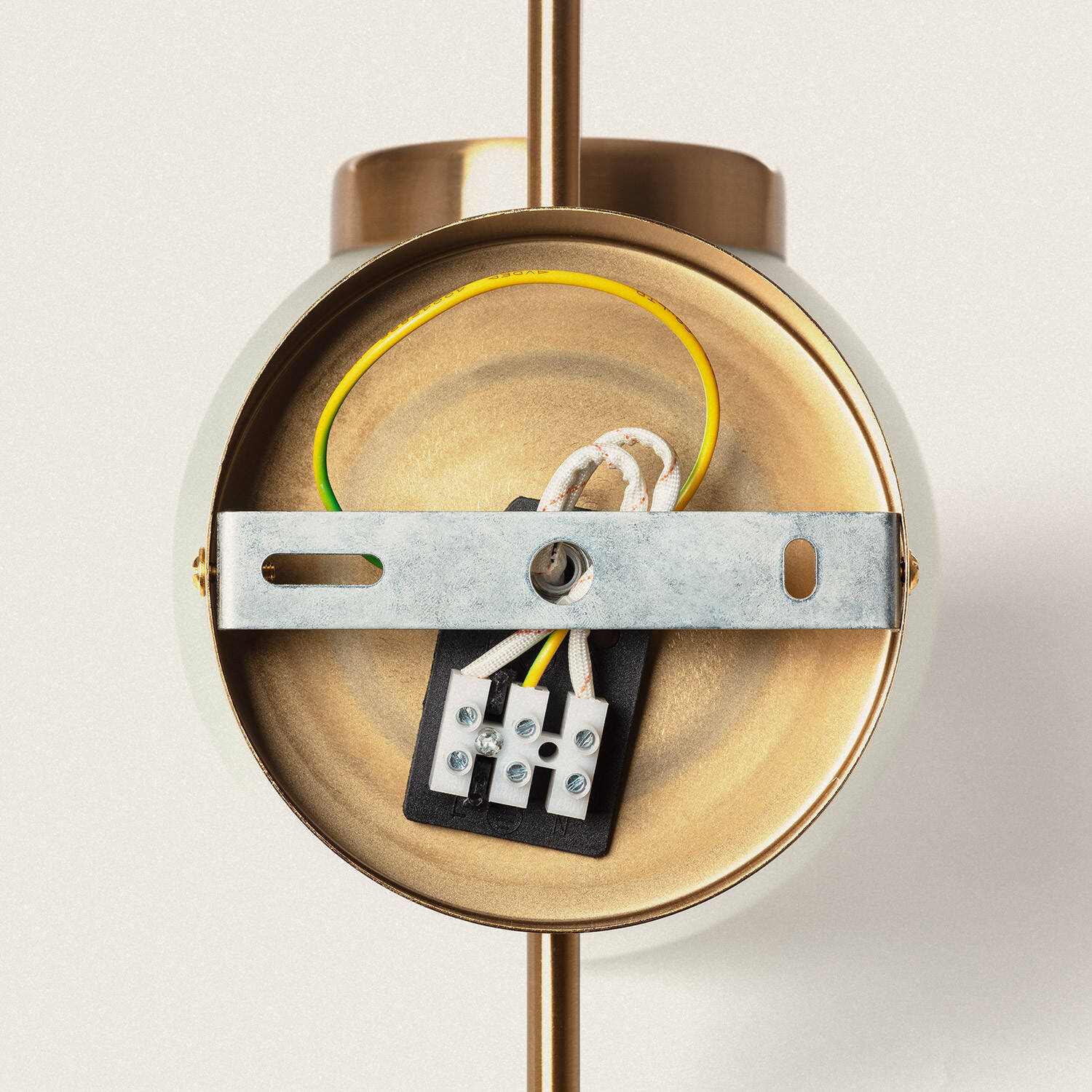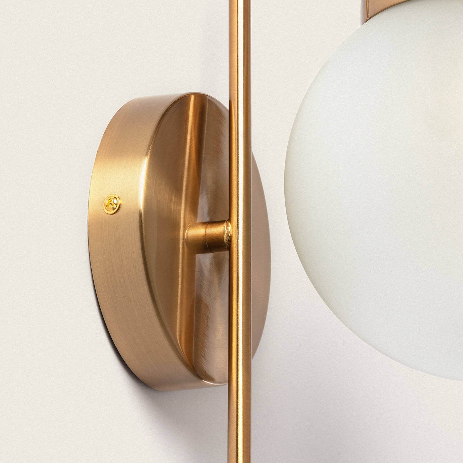 Son esthétique dorée et son globe opale créent un équilibre parfait entre modernité et vintage. Les lignes épurées et la rosace discrète s’intègrent aux façades et intérieurs soignés, offrant une présence raffinée sans surcharger visuellement l’espace. Ses dimensions compactes s’adaptent aisément aux petits espaces.