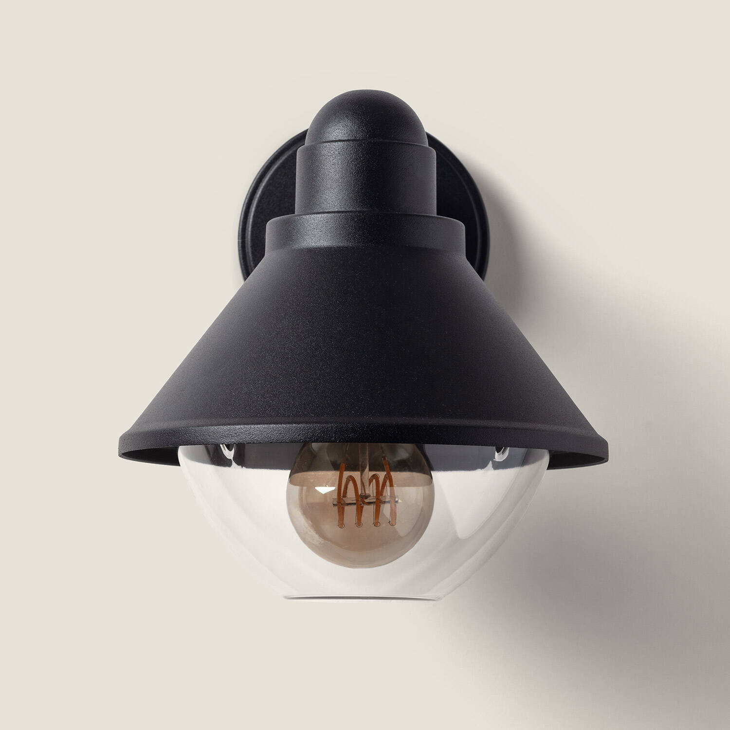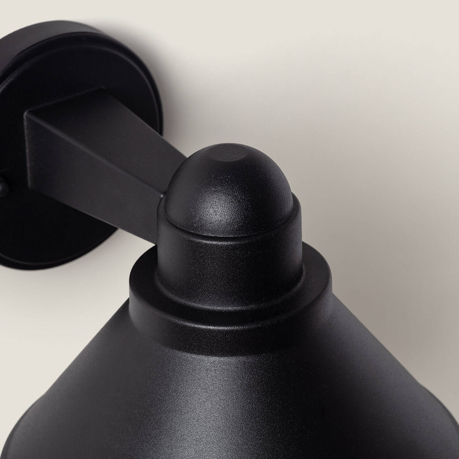 Son abat-jour conique et son verre transparent offrent une esthétique contemporaine qui s’intègre aux façades modernes comme classiques. Le noir mat met en scène l’éclairage, créant une ambiance chaleureuse et soignée adaptée aux commerces, allées et jardins tout en restant discrète et élégante.
