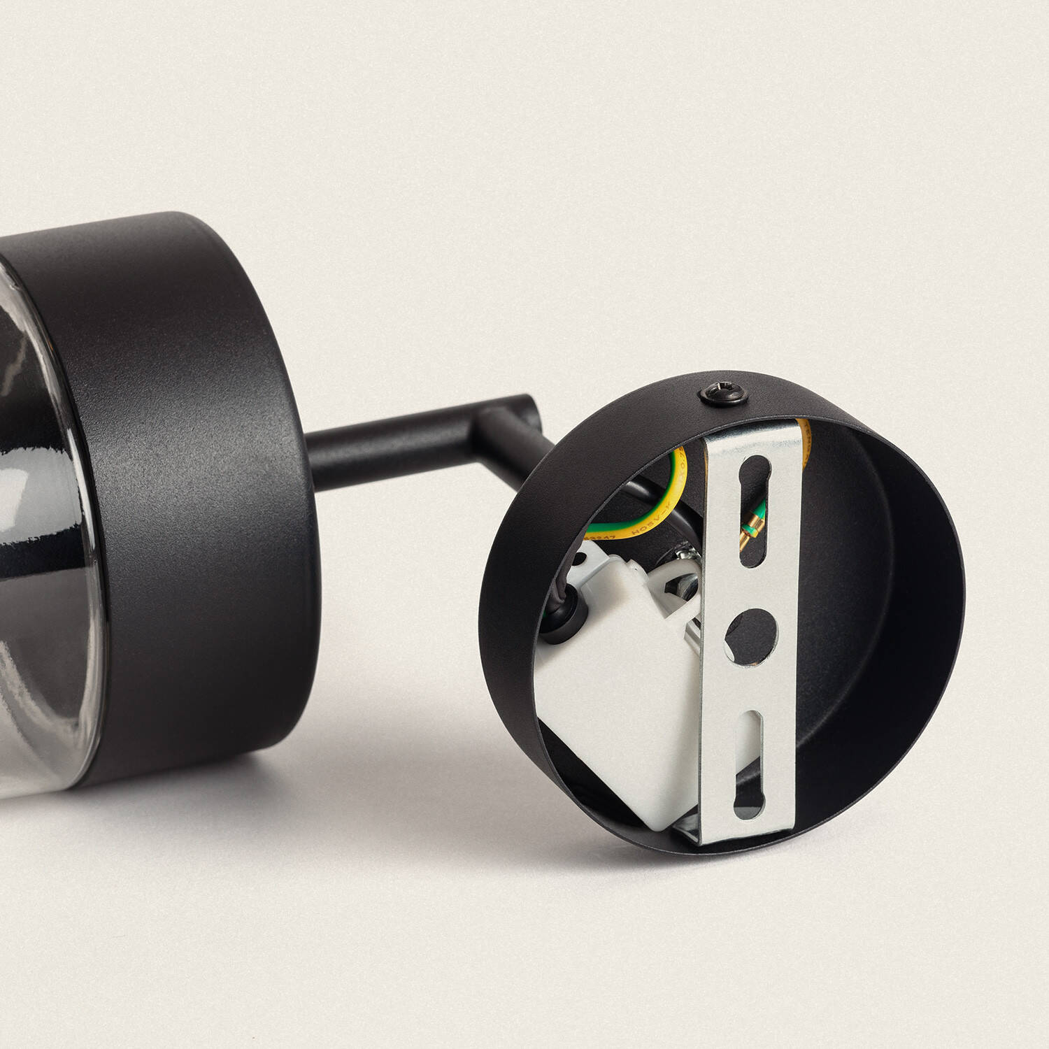 L’association du métal et du verre offre un équilibre apprécié entre robustesse et finesse. La finition noire souligne les lignes de l’applique, tandis que le verre apporte de la légèreté à l’ensemble et contribue à une diffusion lumineuse nette, décorative et harmonieuse.
