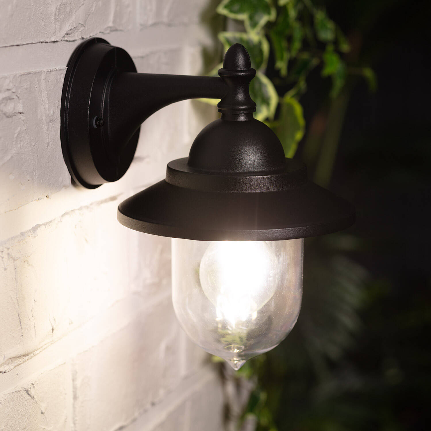 La Lampe Murale Extérieure Métal Klasik séduit par son style classique en métal noir et son diffuseur transparent qui met en valeur l’ampoule. Idéale en applique extérieure sur façade, porche ou balcon, elle offre un éclairage décoratif protégé IP44. Fonctionne avec 1 ampoule E27 non incluse.