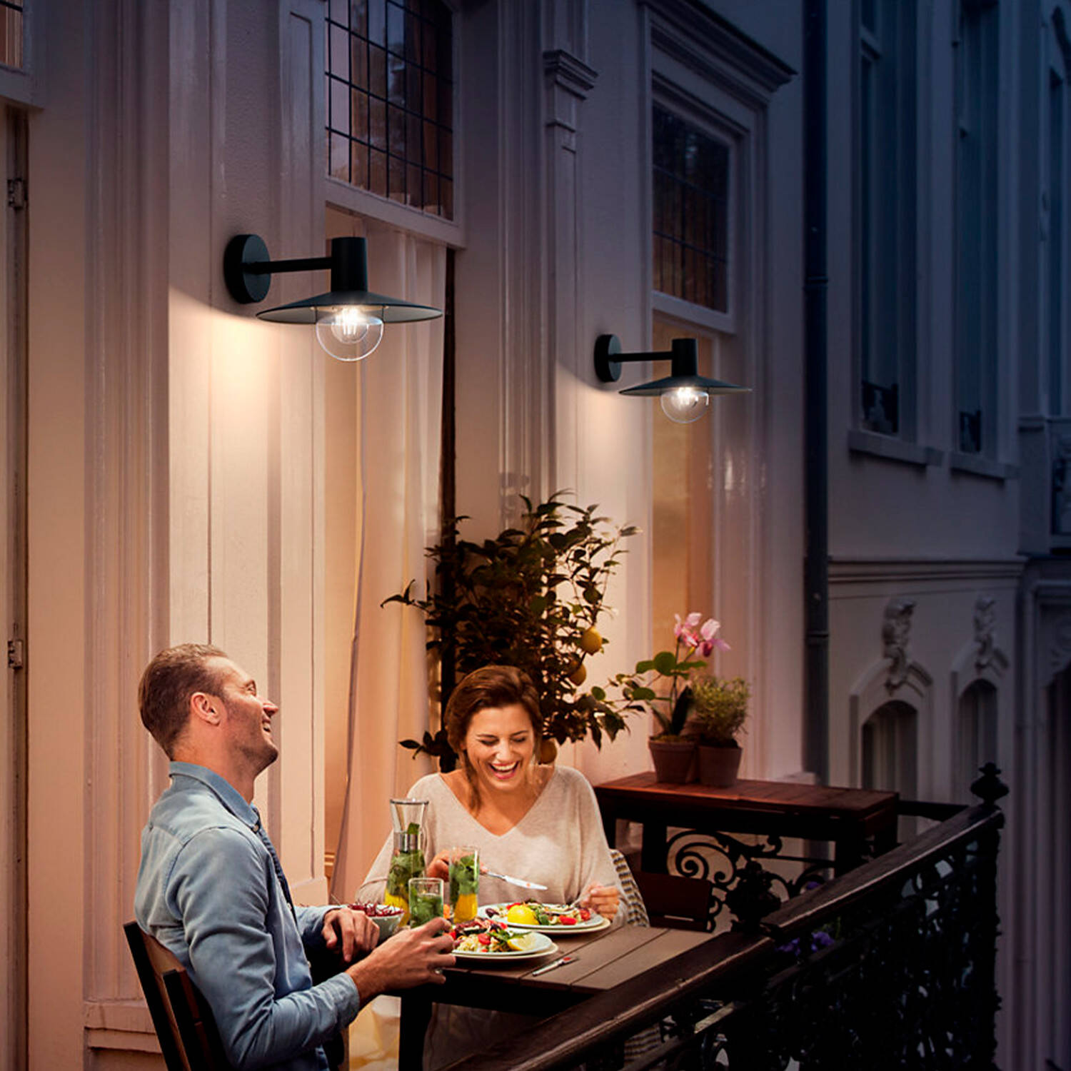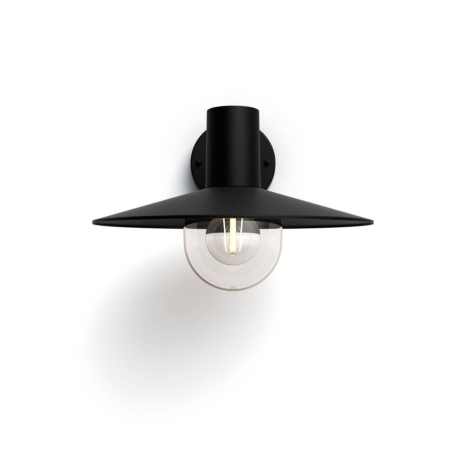 Le globe apparent, associé à l’abat-jour conique, produit un faisceau dirigé et enveloppant qui valorise les surfaces et crée une atmosphère chaleureuse. Idéale près d’une porte d’entrée ou d’une terrasse, elle met en scène vos soirées en extérieur avec une lumière soignée et accueillante.