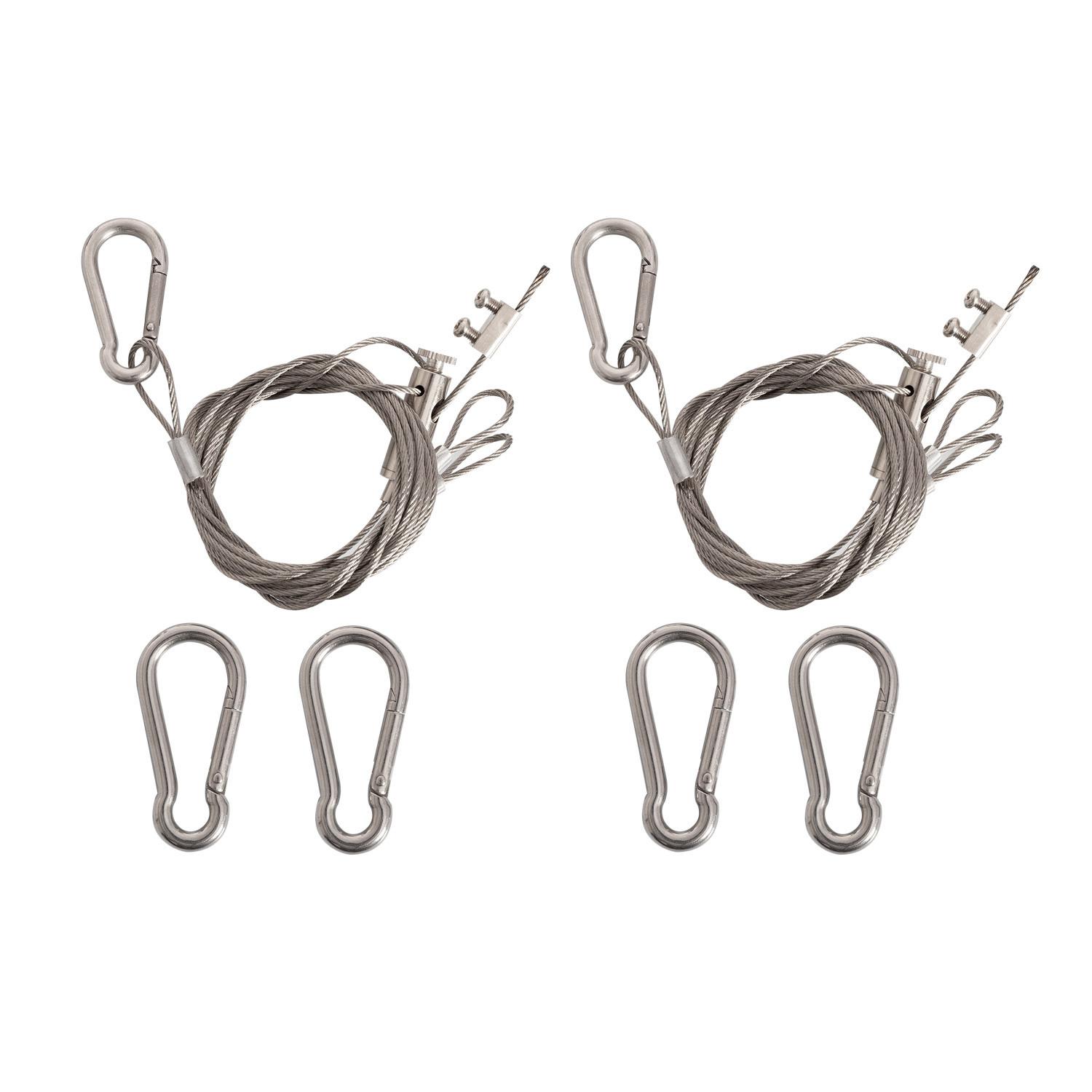 La livraison inclut le driver et un kit de fixation composé de câbles d'acier et de mousquetons tels qu'on les voit sur les photos. Ces éléments permettent un montage en suspension réglable. Aucune prise secteur n'est fournie sur le câble d'alimentation visible, il faudra réaliser une liaison fixe au tableau ou ajouter une prise selon votre installation, en respectant les normes électriques.