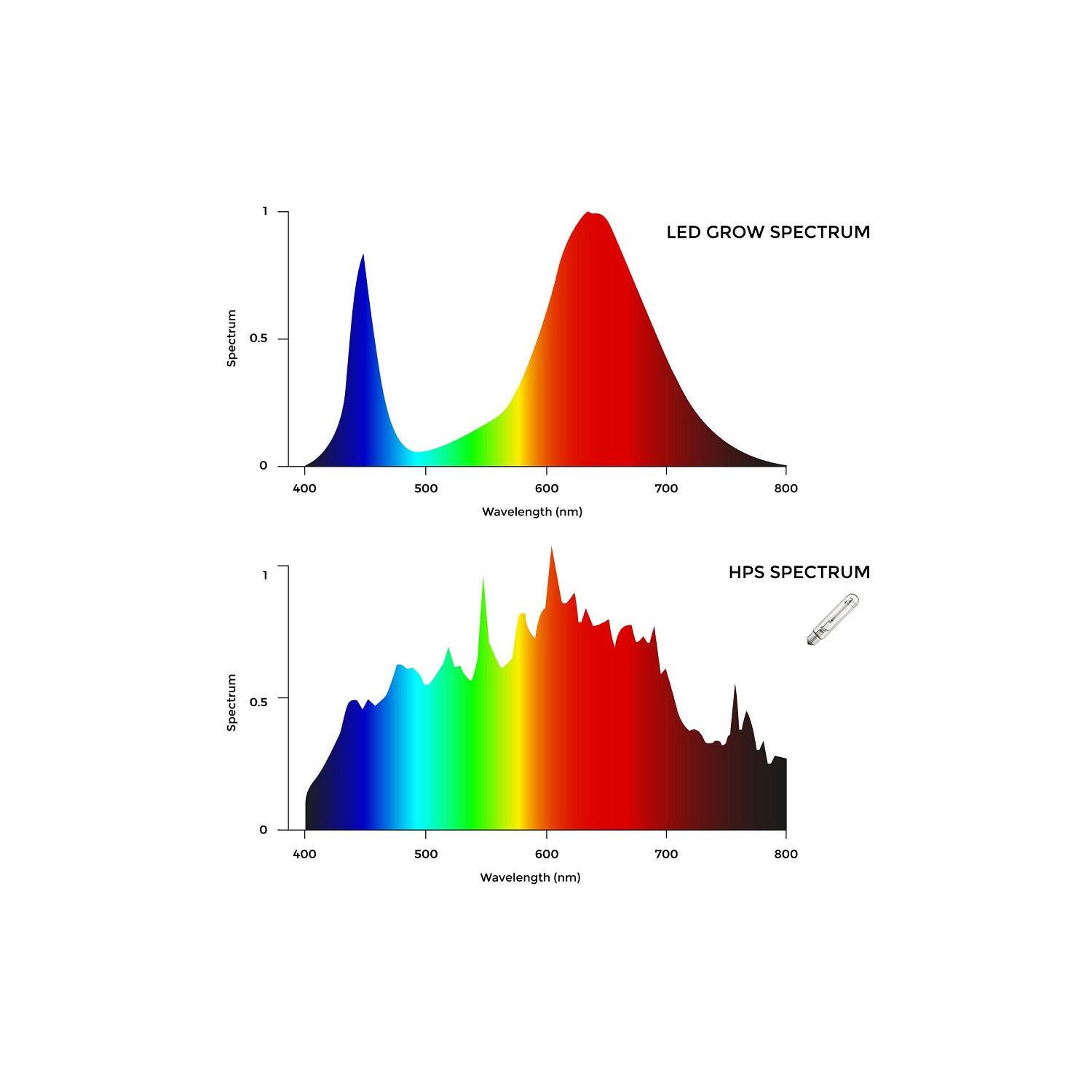 Équipé de sources OSRAM et d’un design linéaire performant, ce luminaire délivre un flux homogène et un angle d’ouverture large à 120°. L’énergie photonique dépend de la hauteur d’installation; par exemple deux barres à 1 m couvrent efficacement 1 m² pour atteindre un niveau photoniquement adapté à la floraison.