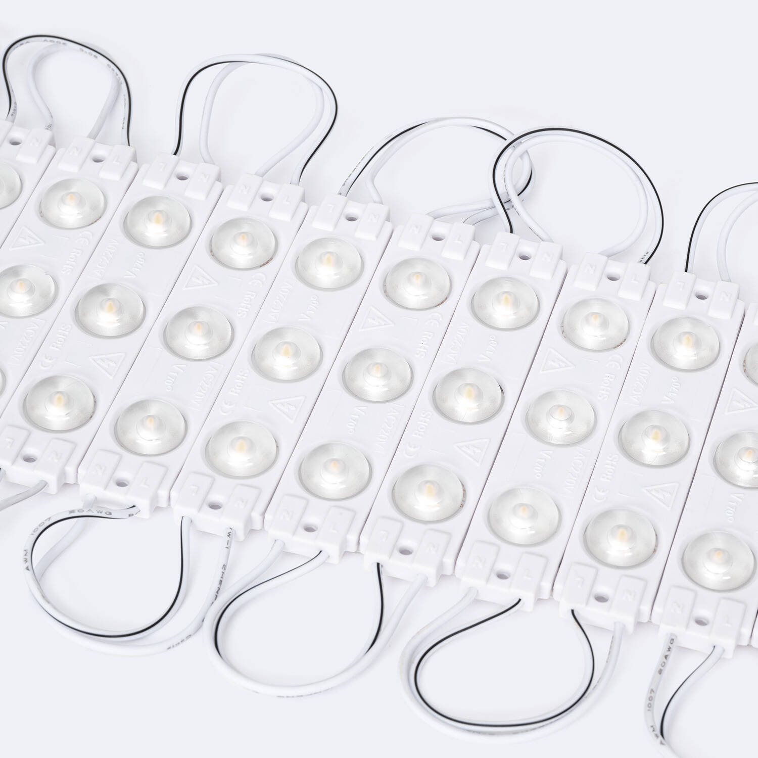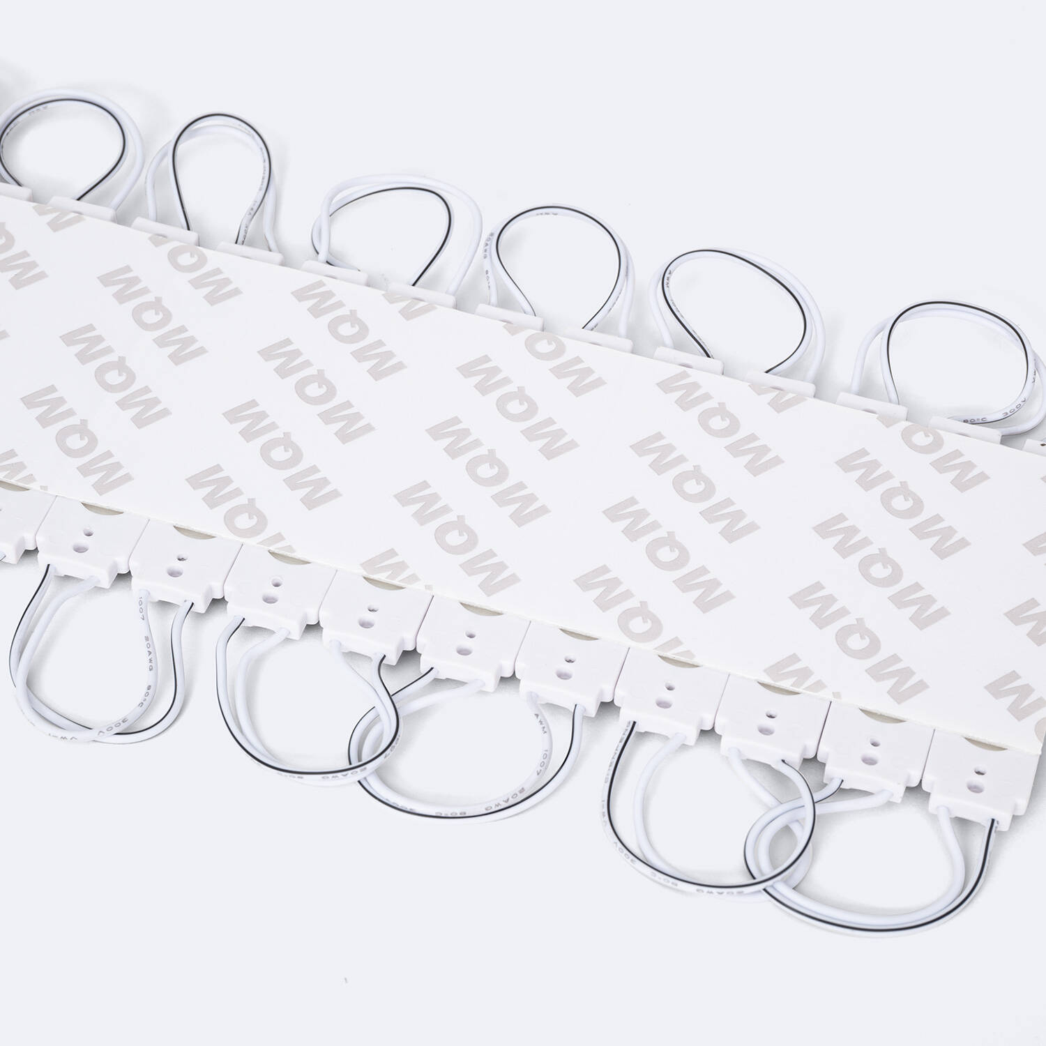 Un flux de 3375 lumens et un angle d’ouverture large de 160° garantissent une répartition lumineuse sans bandes ni zones d’ombre. Les modules intègrent des LED SMD2835 pour une couleur stable et une intensité constante, idéale pour la signalétique et les lettres boîtiers rétroéclairés.